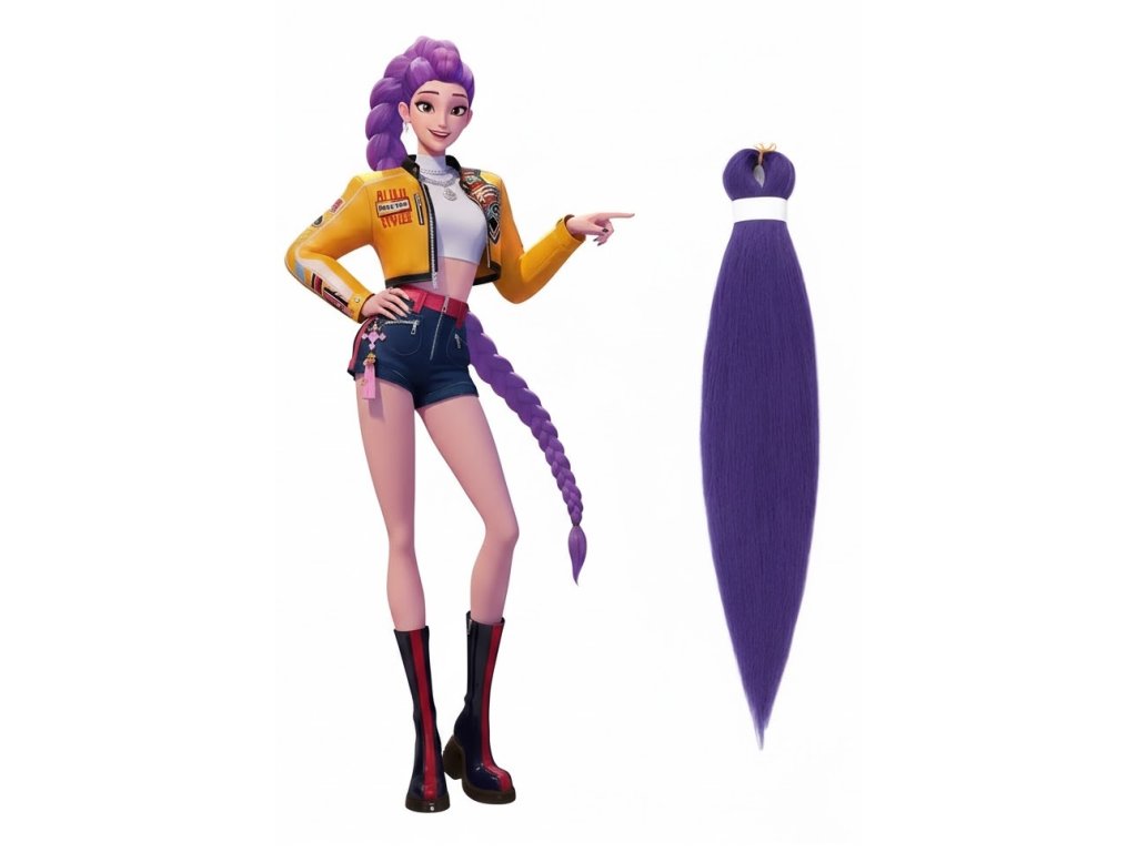 Vrei să strălucești la carnaval, petrecere sau la un eveniment de cosplay? Părul sintetic mov pentru împletituri în stil K-POP, cu lungimea de 60 cm, este alegerea potrivită! Acest accesoriu extravagant este inspirat din lumea starurilor Kpop, unde culorile și stilul nu cunosc limite. Datorită culorii mov vibrante, te transformi instantaneu într-o idolă dintr-o trupă coreeană populară sau într-o misterioasă Rumi din lumea anime-ului.