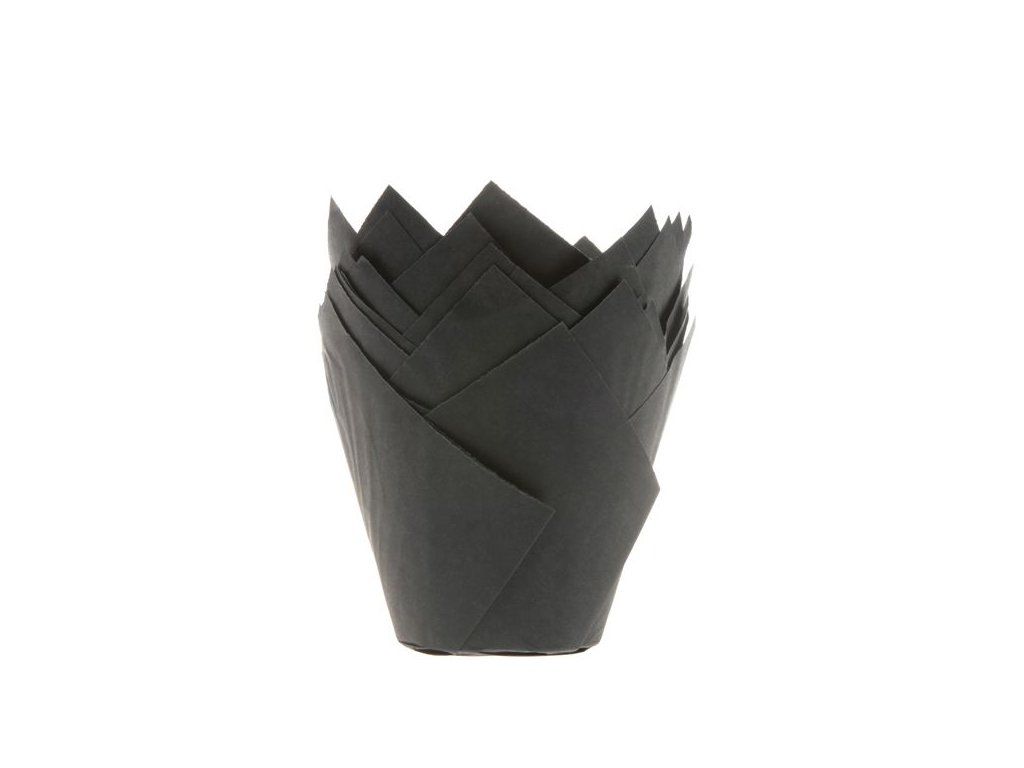 Coșuri negre pentru brioșe sub formă de lalea 36 buc