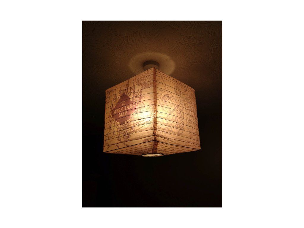 Creați acasă atmosfera magică a lui Hogwarts cu aceast lampion din hârtie. Are forma unui cub și cu un imprimeu inspirat din Harta Wrecker folosită de Harry Potter.