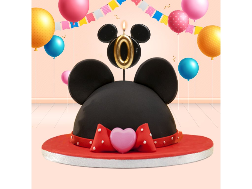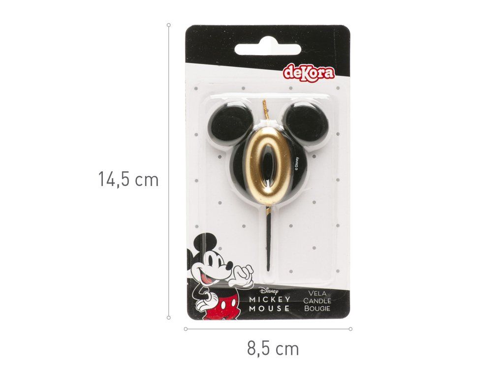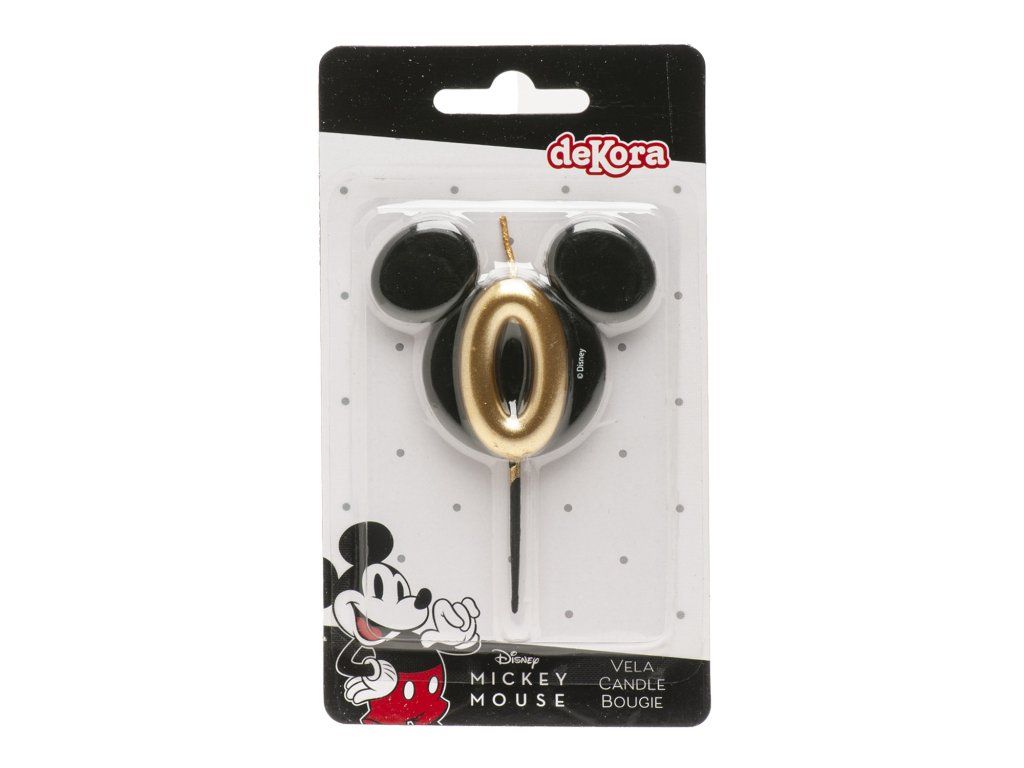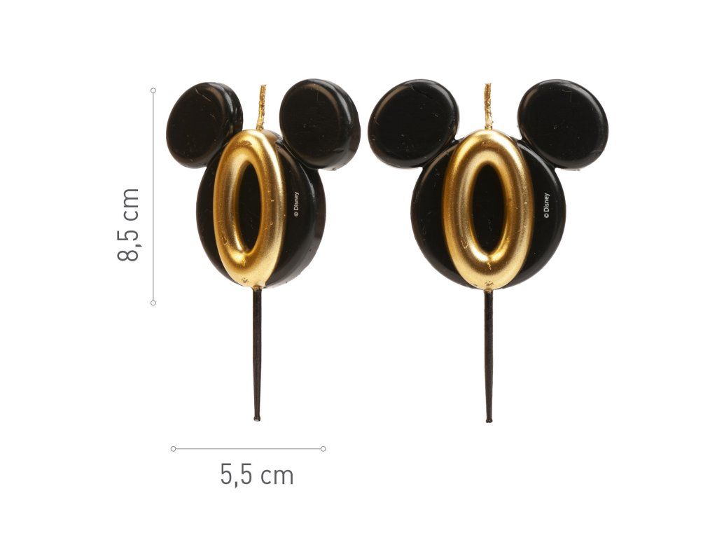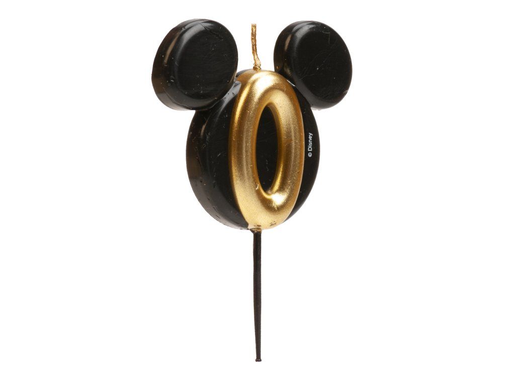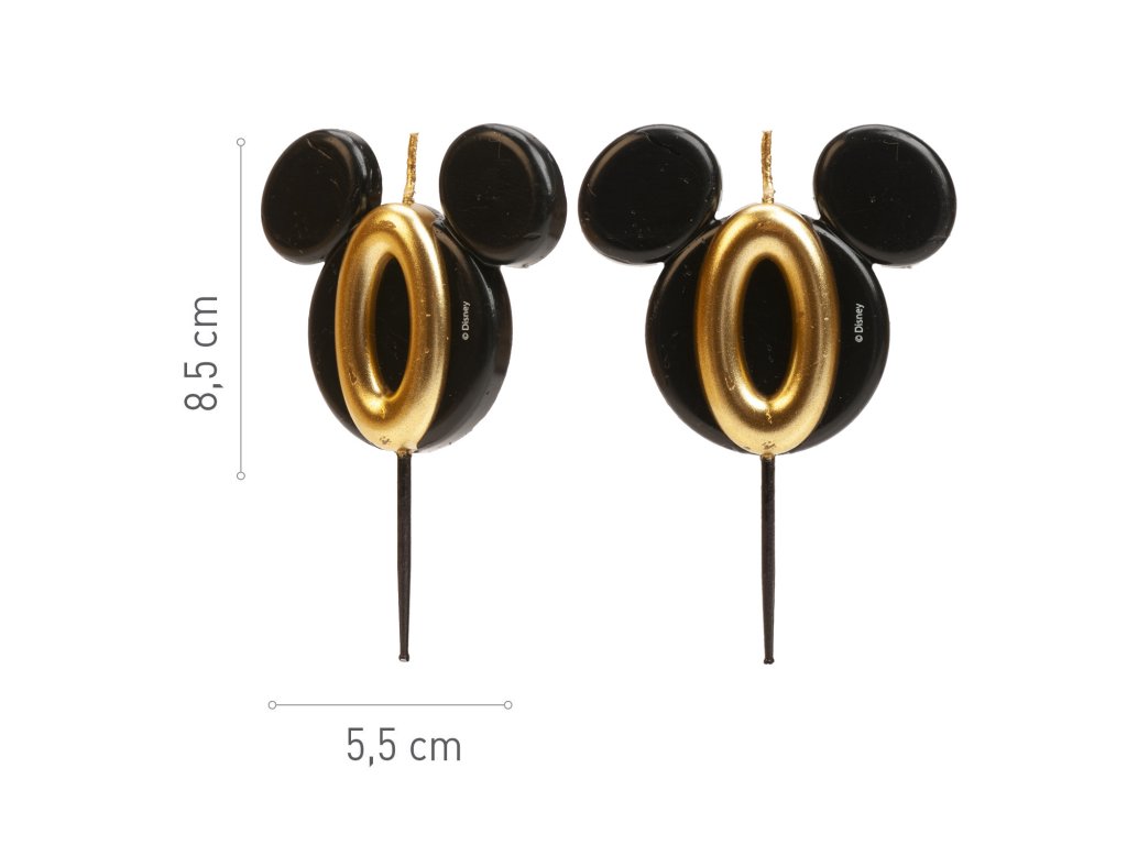 Lumânare stilată și originală cu cifra 0 în designul capului emblematic al lui Mickey Mouse! Combinația elegantă de negru și auriu oferă torturilor un aspect luxos și va încânta atât micii cât și marii fani Disney.