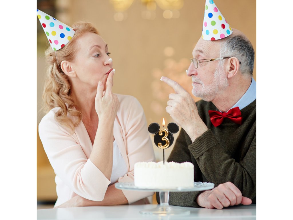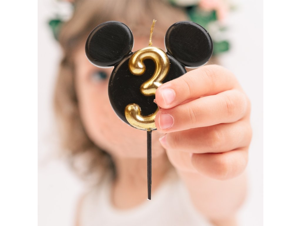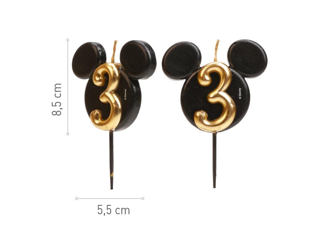 O lumânare stilată și originală cu numărul 3 în designul iconicei căpșoare a lui Mickey Mouse! Combinația elegantă de negru și auriu oferă torturilor un aspect luxos și va încânta atât micii, cât și marii fani Disney.