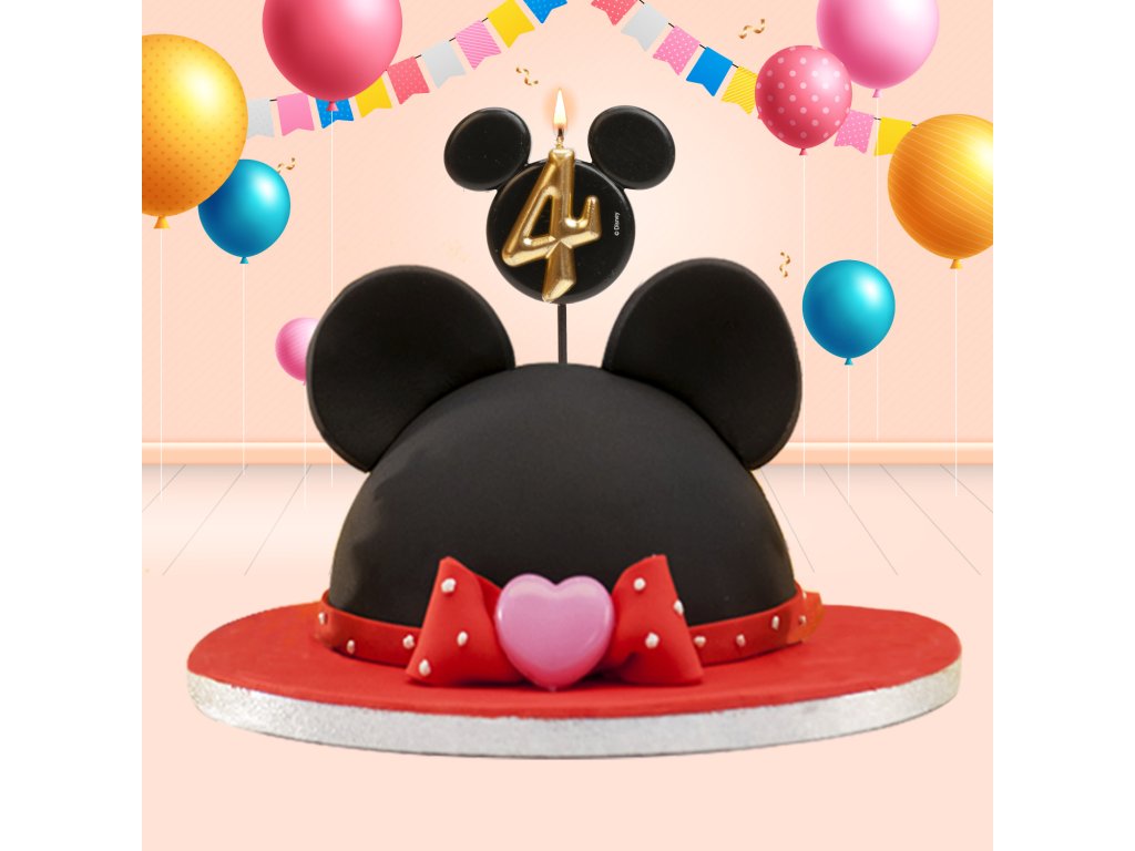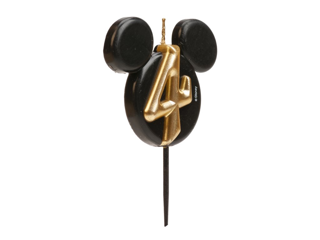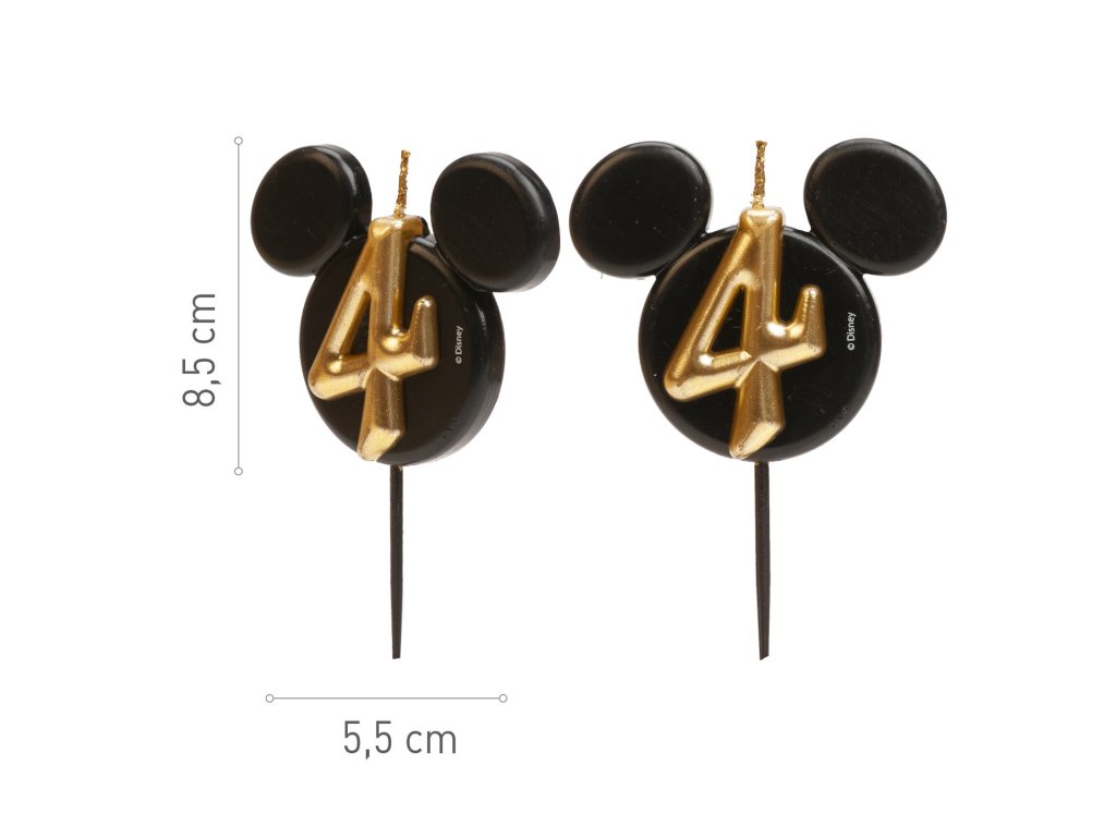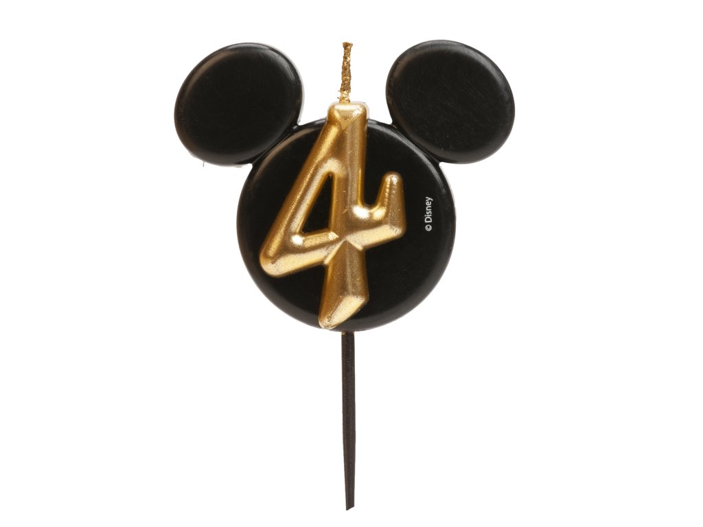 O lumânare stilată și originală cu numărul 4 în designul iconicei fețe a lui Mickey Mouse! Combinația elegantă de negru și auriu oferă tortului un aspect luxos și va bucura atât micii cât și marii fani ai Disney.
