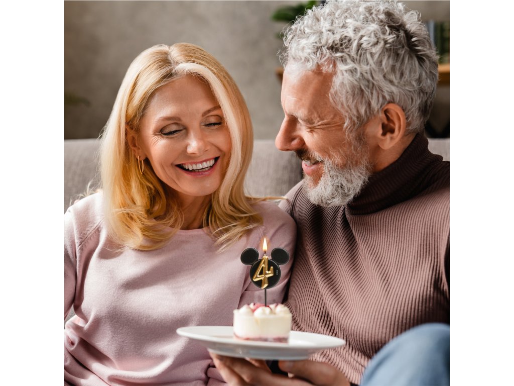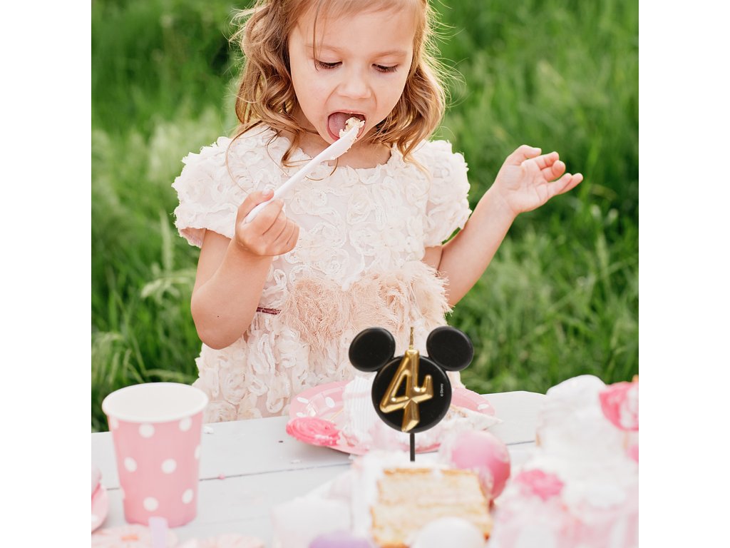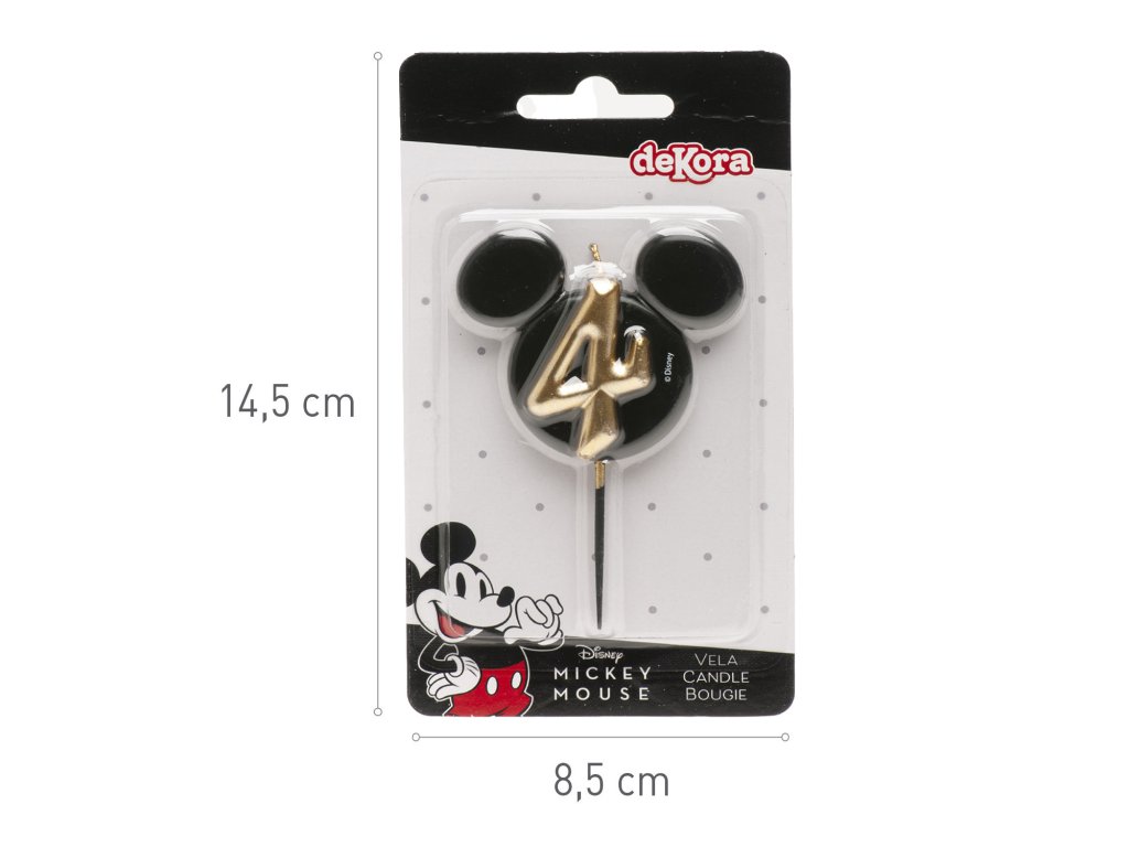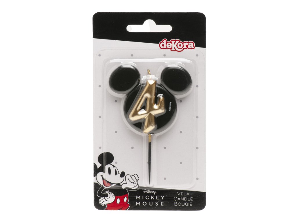 O lumânare stilată și originală cu numărul 4 în designul iconicei fețe a lui Mickey Mouse! Combinația elegantă de negru și auriu oferă tortului un aspect luxos și va bucura atât micii cât și marii fani ai Disney.
