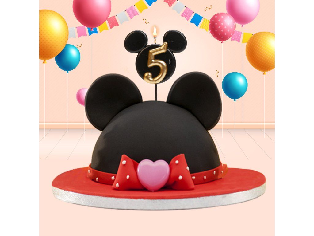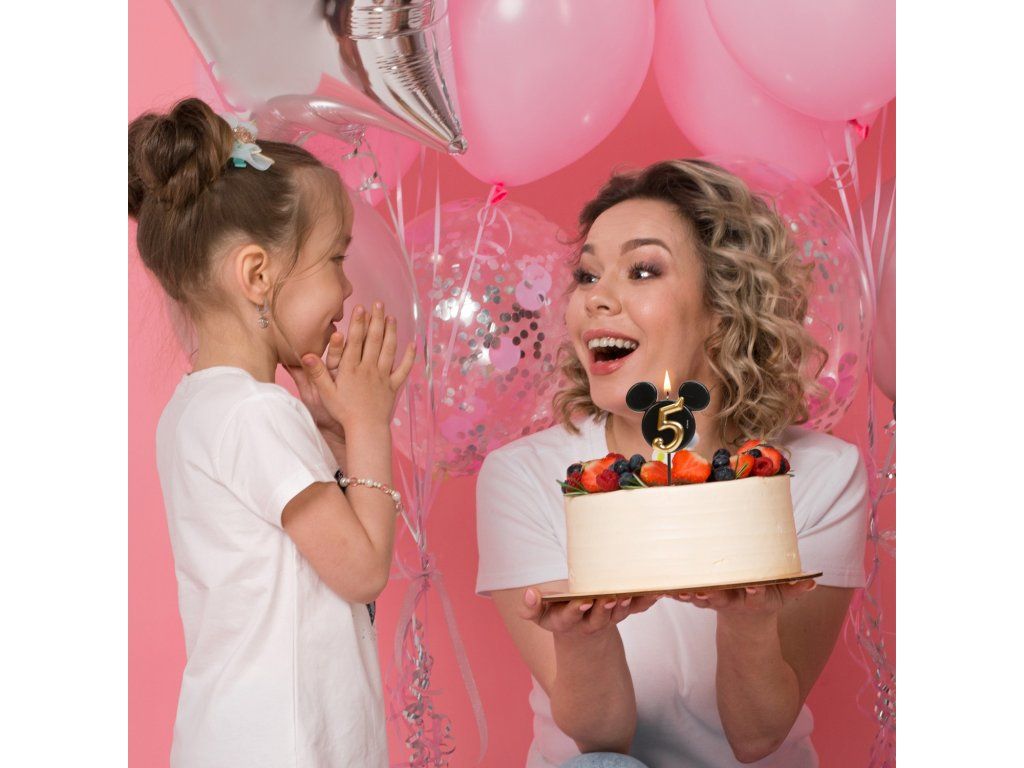 O lumânare stilată și originală cu numărul 5 în designul iconicei fețe a lui Mickey Mouse! Combinația elegantă de negru și auriu oferă tortului un aspect luxos și va bucura atât fanii mici, cât și pe cei mari ai Disney.