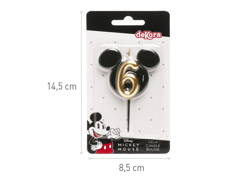 O lumânare stilată și originală cu numărul 6 în designul iconicei fețe a lui Mickey Mouse! Combinația elegantă de negru și auriu oferă tortului un aspect luxos și va bucura atât fanii mici, cât și pe cei mari ai Disney.