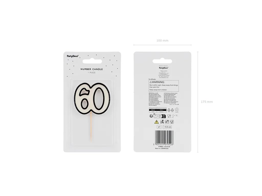 Se apropie șaizeci de ani? Pregătiți-vă pentru o petrecere pe cinste! Această lumânare elegantă alb-negru cu numărul 60 este exact ceea ce are nevoie tortul dvs. aniversar ca să strălucească (la propriu și la figurat). Aprindeți-o, ca toți să vadă că vârsta este doar un număr – și unul destul de mare! Adăugați baloane, confetti și, mai ales, bună dispoziție, pentru că, alături de această lumânare, orice glumă va fi mai amuzantă și orice râs mai zgomotos. Sărbătoriți șaizeci de ani cu grație, stil și o porție zdravănă de distracție!