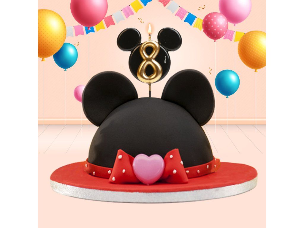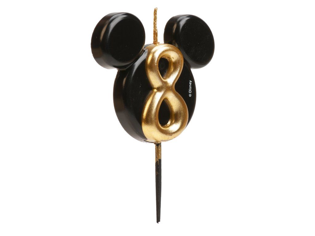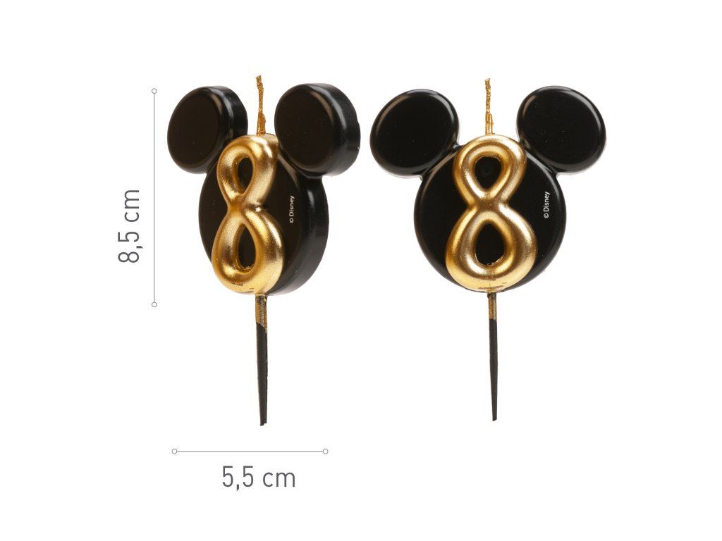 O lumânare stilată și originală cu numărul 8 în designul iconicei fețe a lui Mickey Mouse! Combinația elegantă de negru și auriu oferă tortului un aspect luxos și va bucura atât fanii mici, cât și pe cei mari ai Disney.