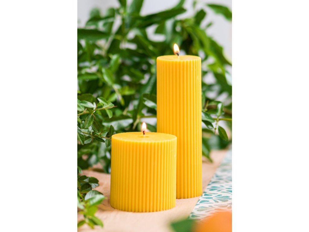 Lumânare decorativă cu dungi - Galben-muștariu 5 x 15 cm