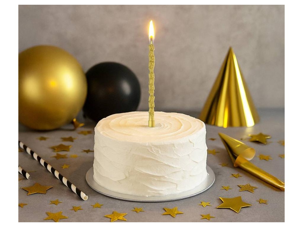 Lumanare Happy Birthday - auriu 13 x 0,7 cm 1 buc.