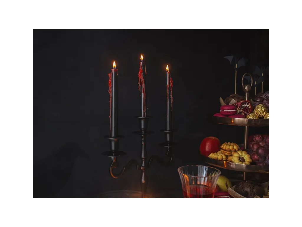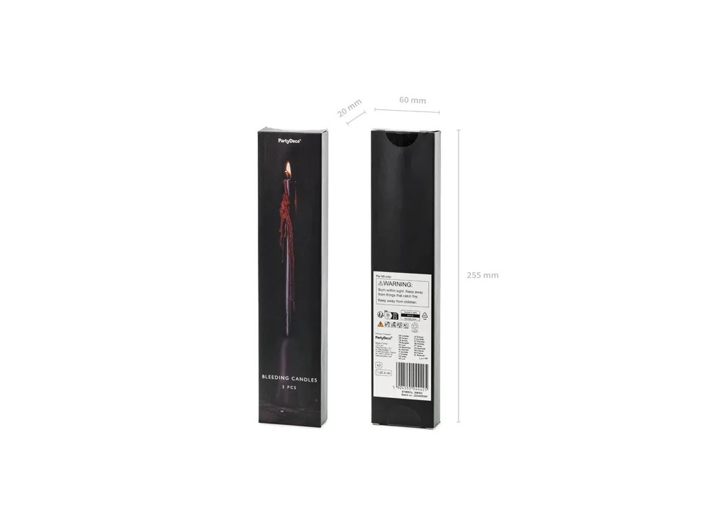 Aceste lumânări originale creează o atmosferă misterioasă și înfricoșătoare la orice petrecere de Halloween sau petrecere tematică. După aprindere, ceara roșie începe să curgă pe marginile lumânării, creând un efect realist de „sângerare”. Pachetul conține 3 lumânări cu o înălțime de 25 cm – ideale pentru decorarea mesei sau ca accesoriu pentru decorul unui interior înfricoșător.