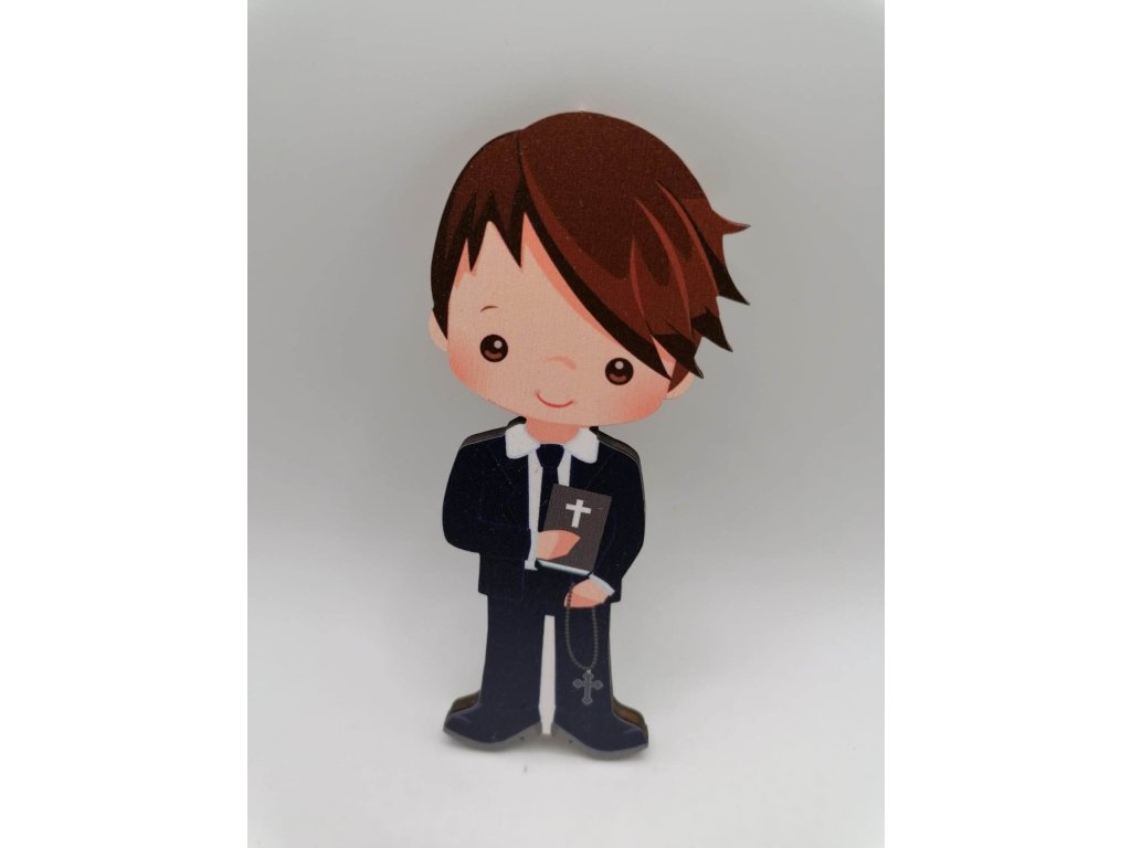 Un magnet unic din lemn în formă de băiețel este un accesoriu perfect pentru tortul de la prima sfântă împărtășanie. Datorită acestui decor elegant și drăguț, puteți transforma chiar și un tort obișnuit într-un tort unic pe care toată lumea îl va admira. Nu trebuie decât să lipiți un bețișor din lemn pe spatele tortului. Magnetul nu este menit să fie consumat, dar păstrarea lui va face din el o amintire a unei zile speciale.