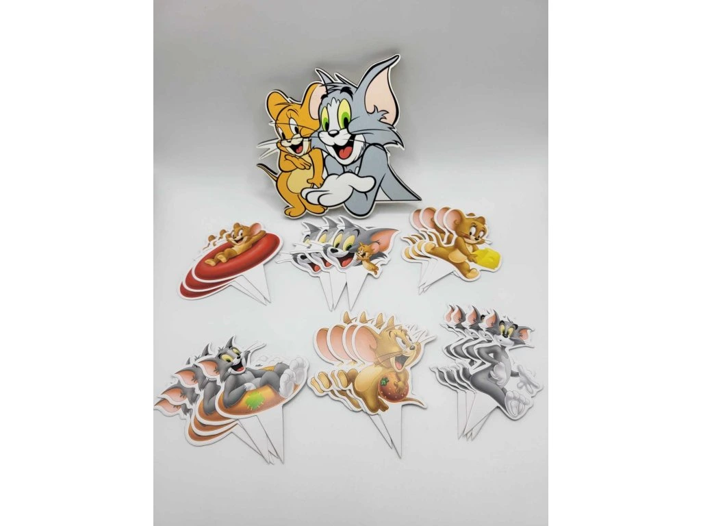 Pregătiți o petrecere aniversară și nu uitați de tort ! Personajele emblematice din desenele animate Tom și Jerry, vor fi o completare simpatică a oricărui tort pentru copii, trebuie doar să lipiți o țepușă de lemn pe spatele tortului. Magnetul nu este destinat consumului, dar păstrarea lui va face din el o amintire a unei zile de naștere și a unei sărbători frumoase.