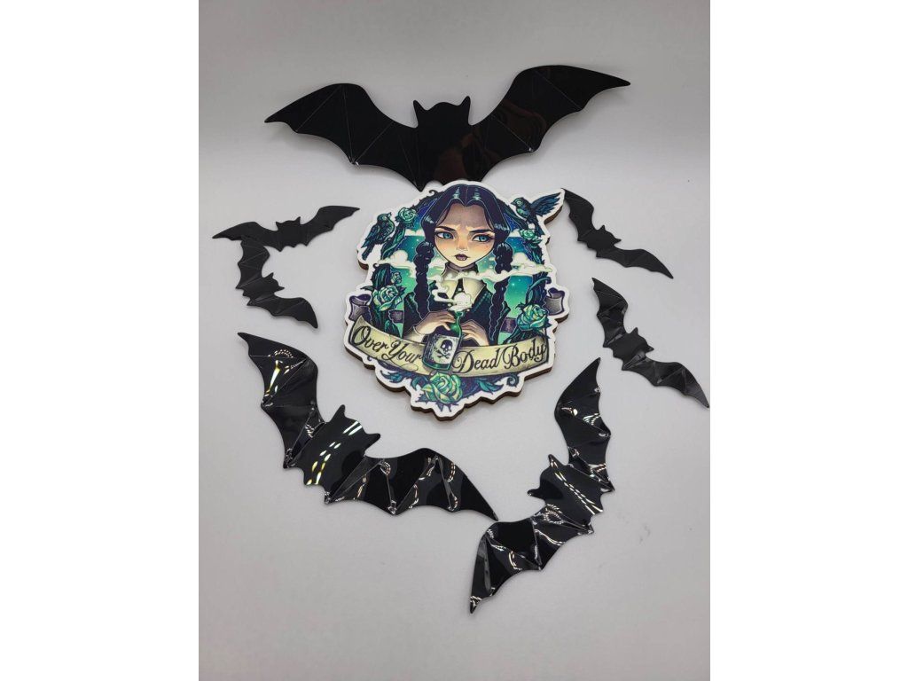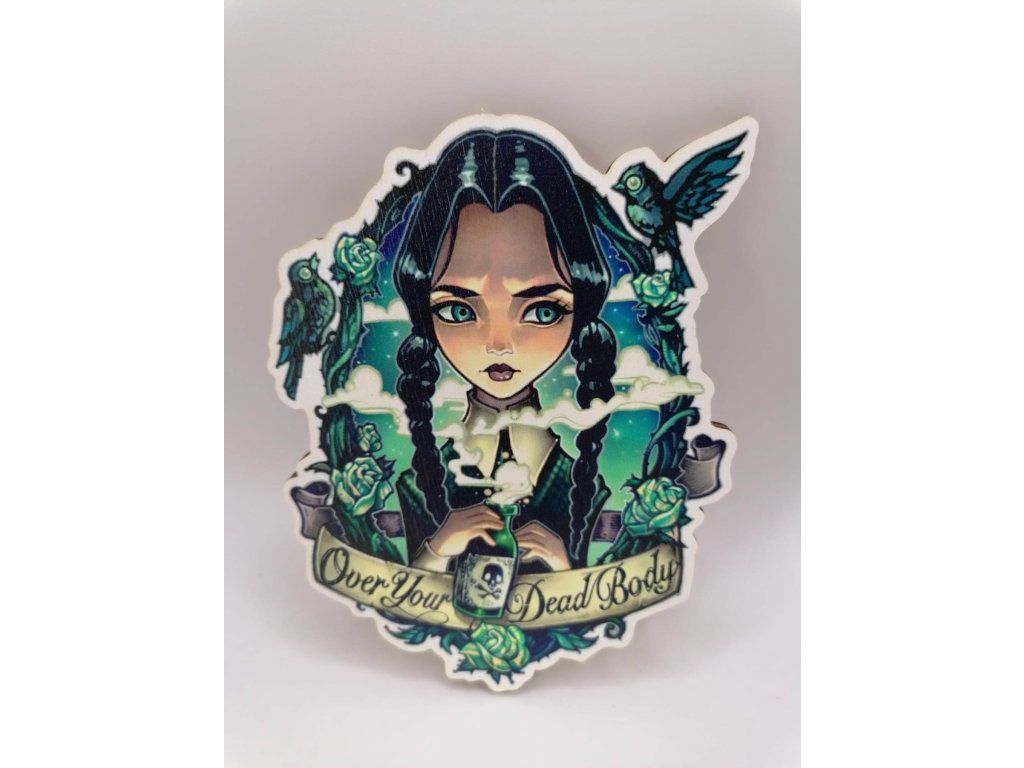 Pregătiți o petrecere aniversară și nu uitați de tort ! Un personaj cunoscut Wednesday Addams, va fi completarea perfectă pentru orice tort, trebuie doar să lipiți o țepușă de lemn pe spatele tortului. Magnetul nu este menit să fie mâncat, dar păstrarea lui va face din el o amintire a unei zile de naștere și a unei sărbători frumoase. Încântă fiecare fan - Wednesday Addams !