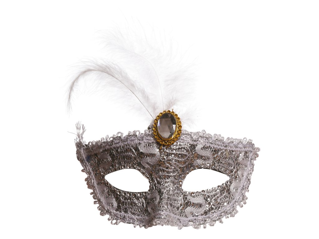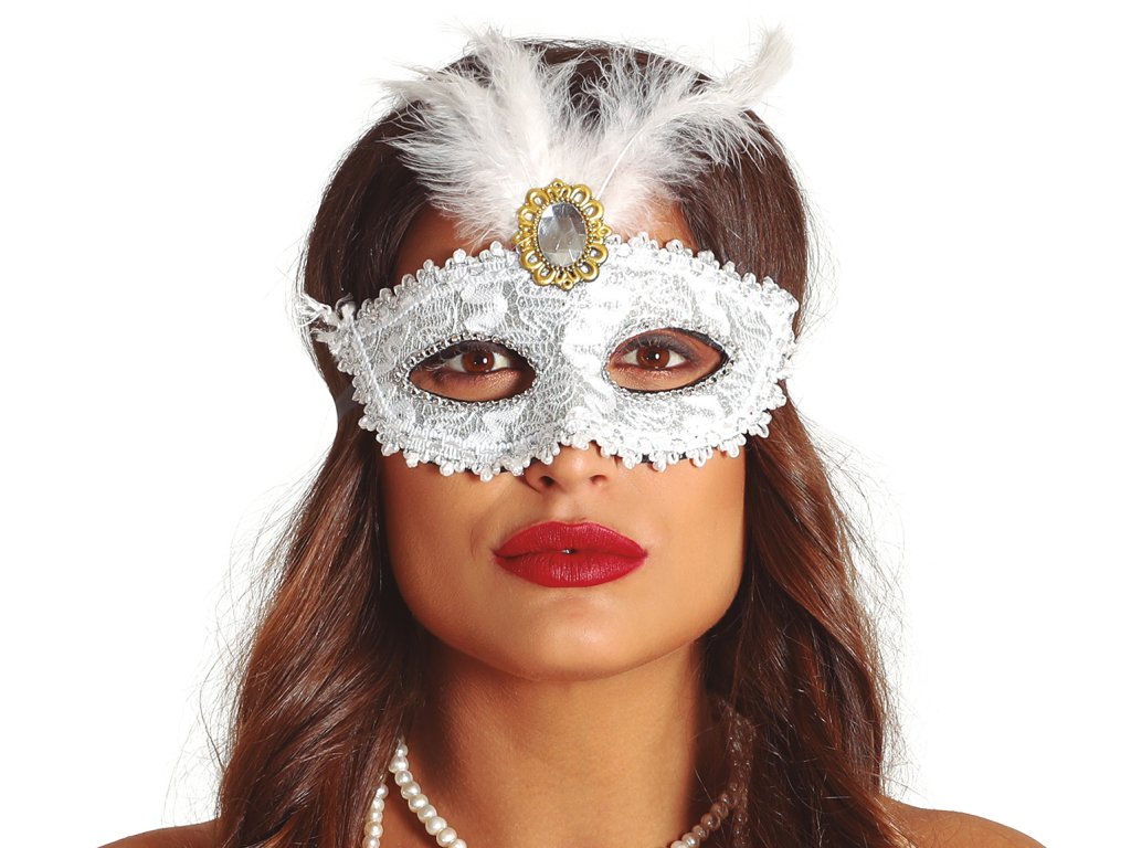 Mască albă cu pene