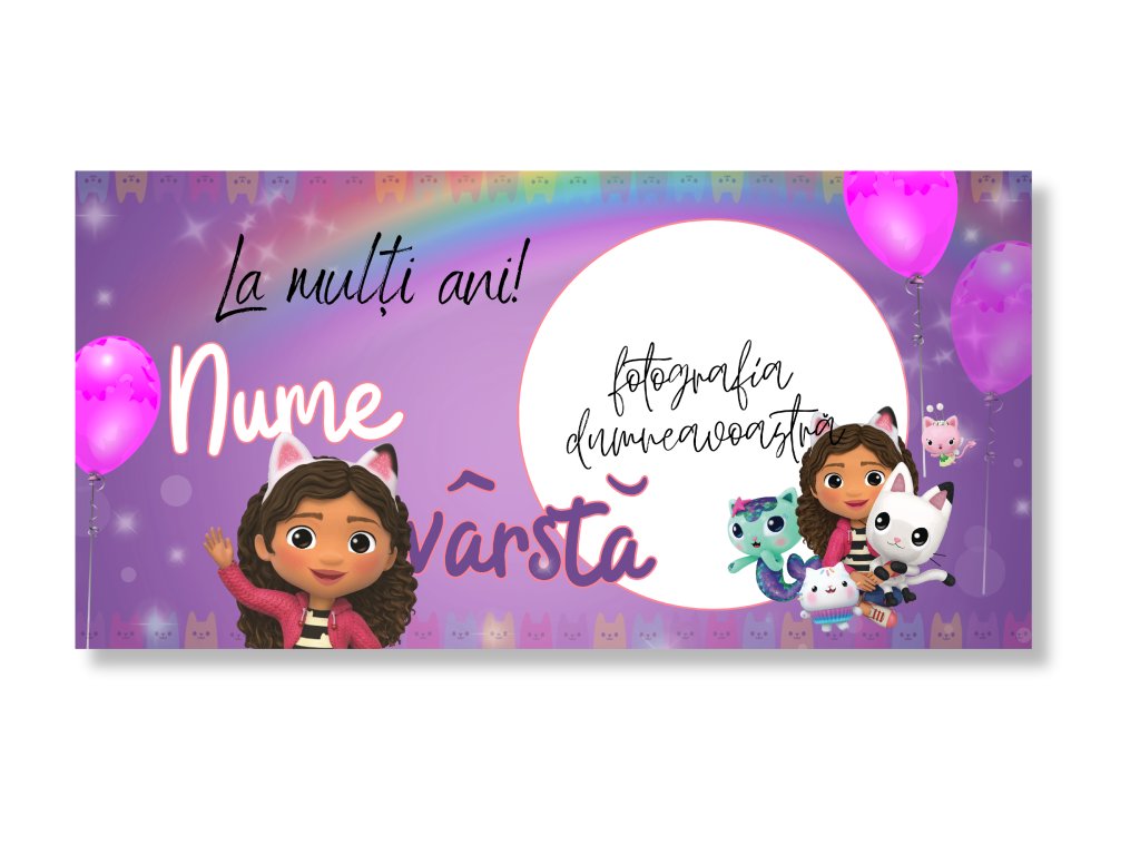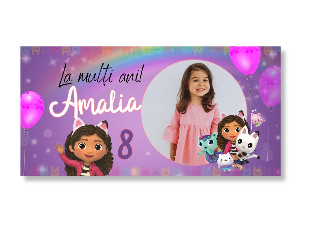 Narodeninový banner s fotkou - Gabby's dollhouse