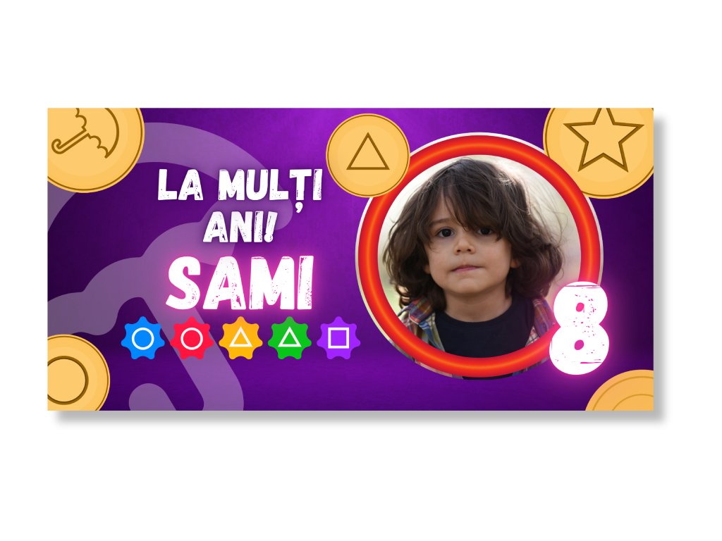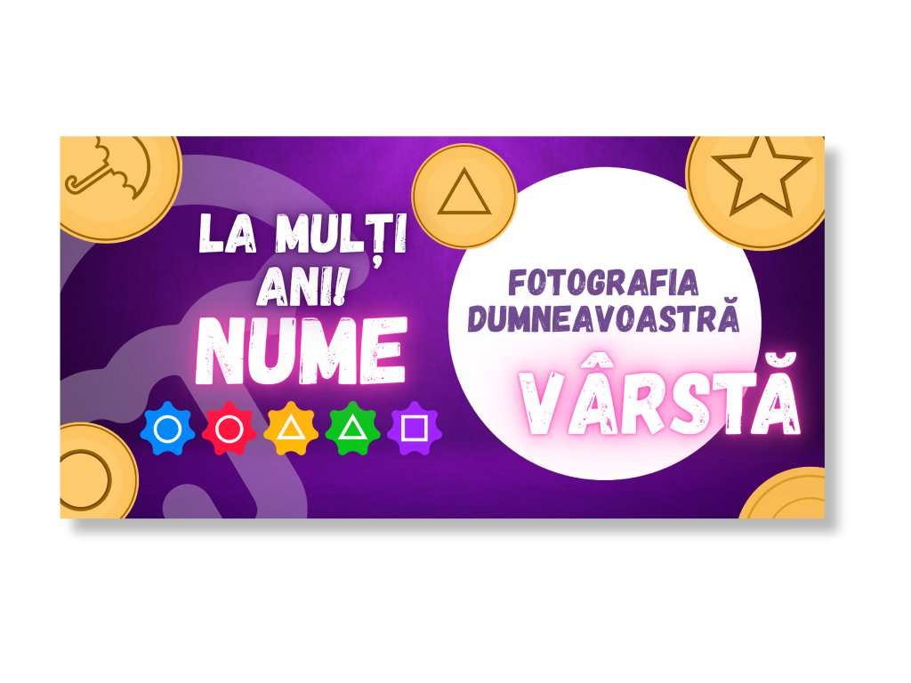 Banner de ziua de naștere cu fotografie - Jocul Calamarului