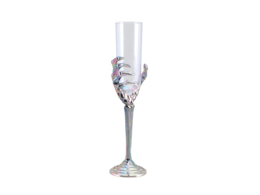 Pahar din plastic cu mâna scheletului pe picior