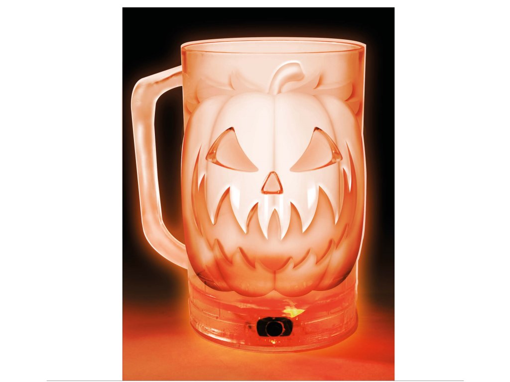 Răcoritoarele sunt inerente oricărei petreceri, un pahar luminos în formă de dovleac va fi un accesoriu practic și original pentru petrecerea de Halloween.