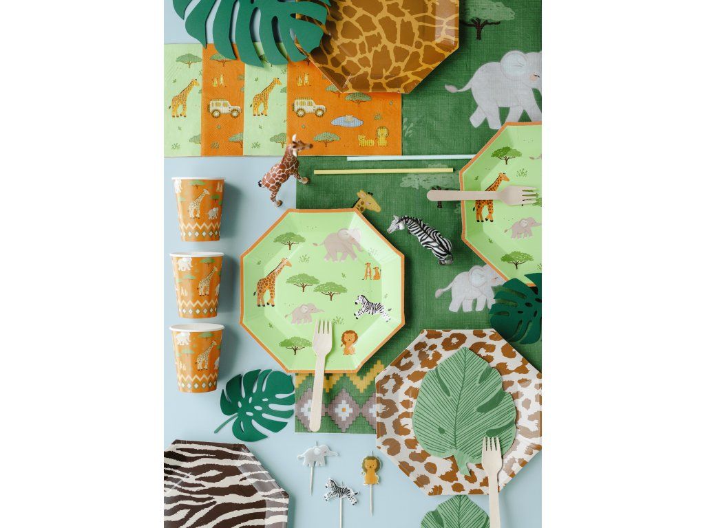 Aceste pahare Safari sunt pahare de hârtie de unică folosință, în nuanță portocalie, cu un motiv vesel imprimat. Sunt potrivite pentru diverse ocazii, precum petreceri, aniversări sau picnicuri, fiind destinate servirii băuturilor reci. Produsul nu este potrivit pentru băuturi fierbinți și este destinat unei singure utilizări.