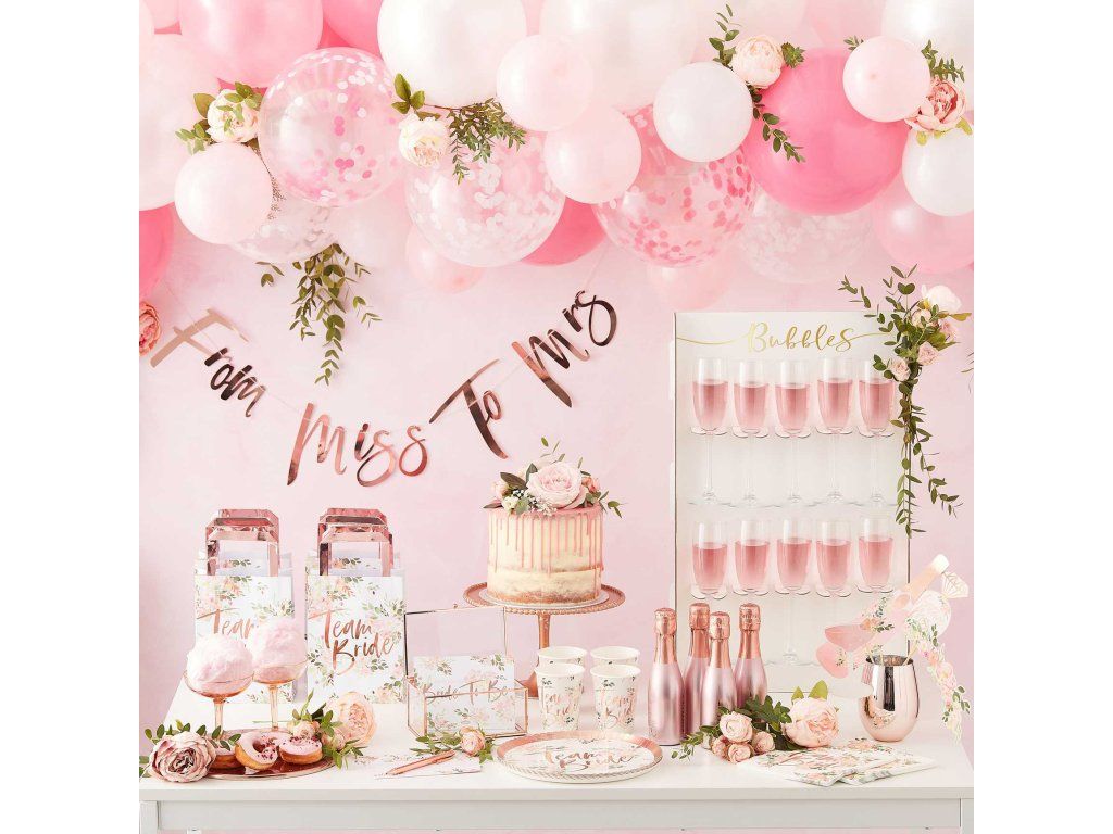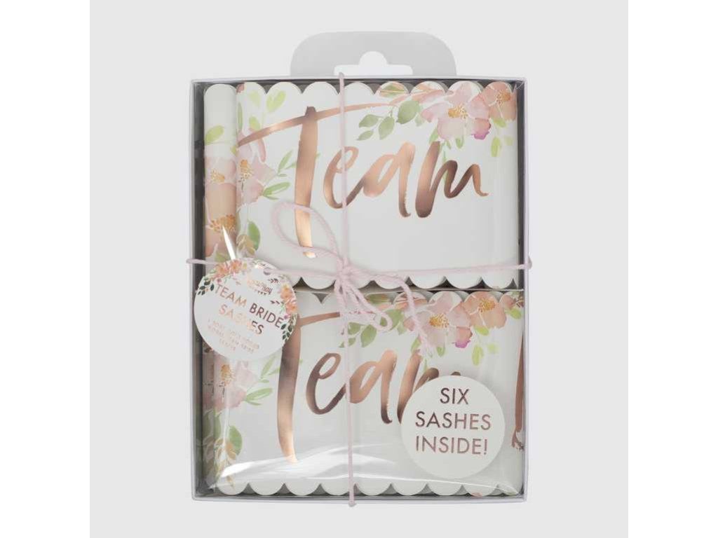Asigurați-vă că domnișoarele dvs. de onoare vor sărbători alături de dvs. petrecerea burlăcițelor marcată cu adevărat rafinat. Oferiți-le aceste frumoase panglici roz, pline de flori superbe, cu litere strălucitoare Team Bride.
