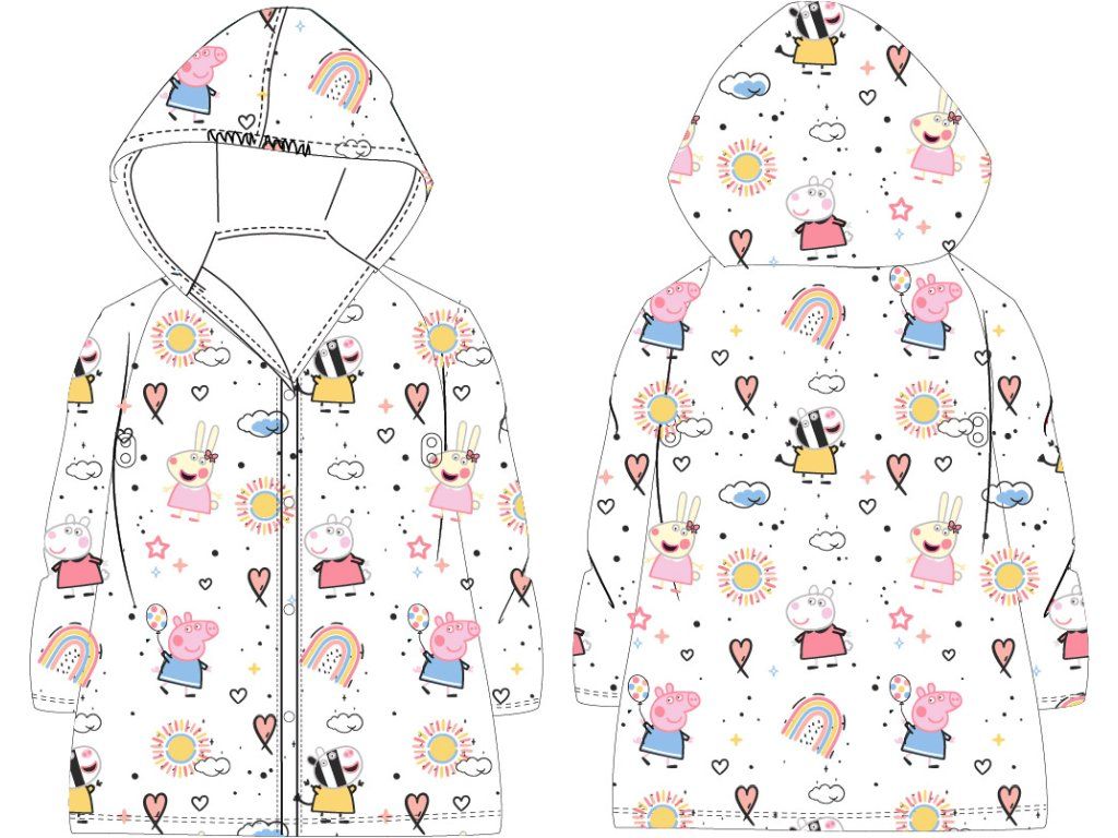 Pelerina de ploaie vă va proteja în mod fiabil copilul de ploaie și de vremea rea. Pelerina de ploaie pentru copii cu motivul Peppa Pig va fi accesoriul potrivit în zilele ploioase de toamnă.