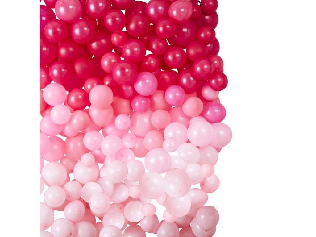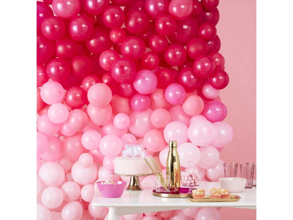 Acest perete din baloane este un accesoriu foarte frumos și impresionant pentru orice petrecere. Conține diferite nuanțe de roz care, atunci când sunt umflate și așezate într-o plasă, vor crea un superb perete din baloane în roz ombre. În pachetul pe care vi-l prezentăm veți găsi tot ce aveți nevoie pentru a-l putea crea singur acasă.