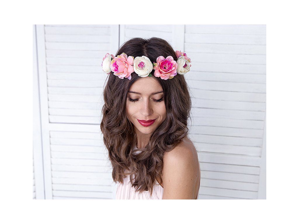 - coronită din flori în culoare roz si alb