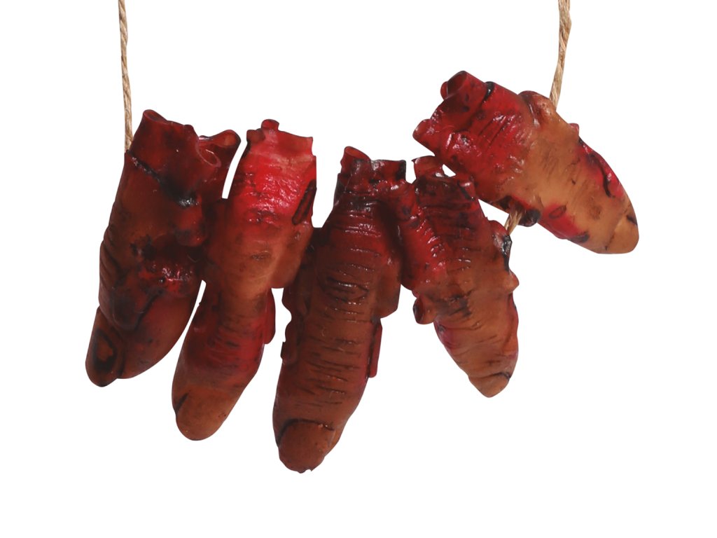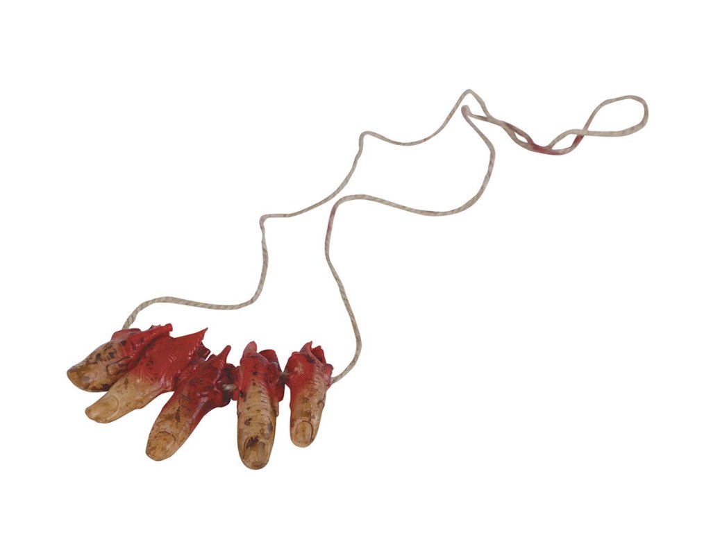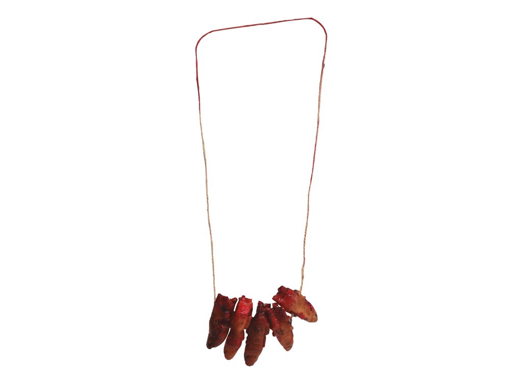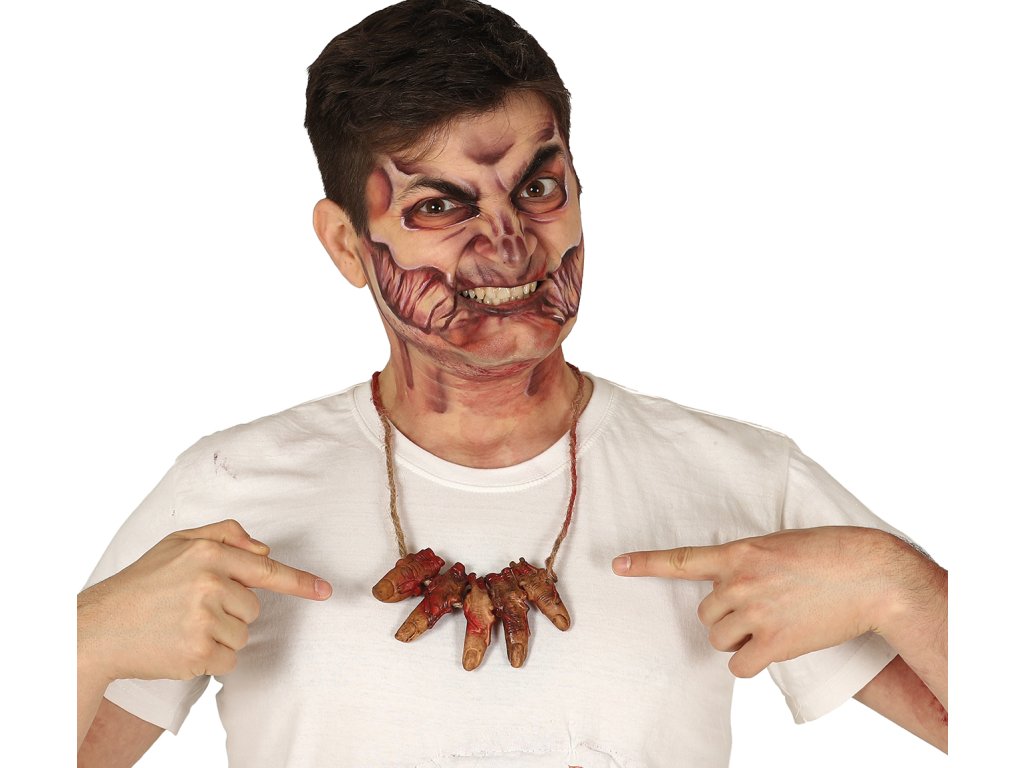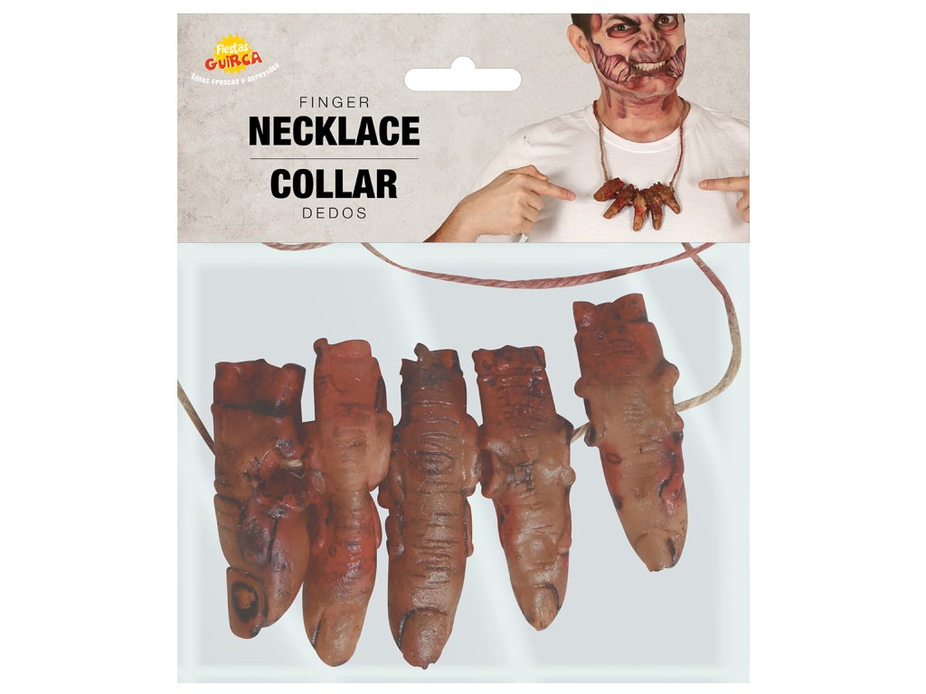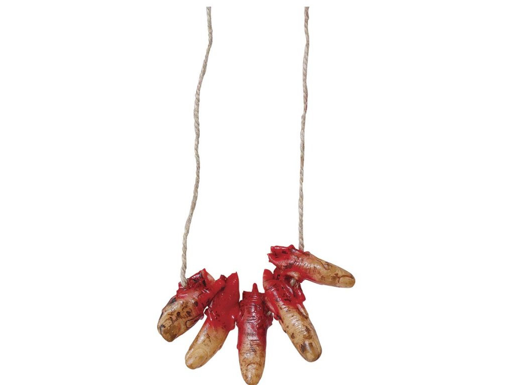 Costumul de Halloween sau carnaval, poate fi mai credibil si datorită diferitelor accesorii cum este acest Colier - degete însângerate. Acest accesoriu se potriveste pentru diferite costume pentru carnaval, bineînteles lăsăm totul la imaginatia voastră.