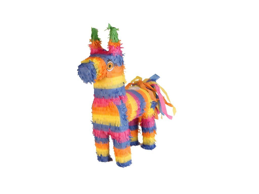 Condimentați fiecare petrecere aniversară cu o pinata distractivă în formă de măgar! Pinata este umplută cu dulciuri sau jucării printr-o mică gaură care este tăiată în ea. Este agățată în mijlocul camerei pe o frânghie lungă, astfel încât să poată fi deplasată în sus și în jos. Apoi, cu ochii legați, încercați să spargeți pinata cu un băț, astfel încât dulciurile sau jucăriile ascunse în ea să cadă. Pinata este perfectă pentru orice sărbătoare, fie pentru un băiat, fie pentru o fată.