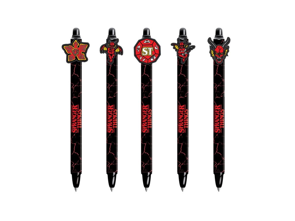 Descoperă lumea pe dos cu pixul nostru gel șters cu tematică Stranger Things! Această piesă grozavă este ideală pentru toți fanii legendarului serial – fie că scrii notițe la școală, fie că desenezi propriile hărți ale Hawkins. Pixul scrie lin datorită cernelii gel, iar dacă ceva nu iese bine, poți șterge pur și simplu – fără urme de Demogorgon sau greșeli!