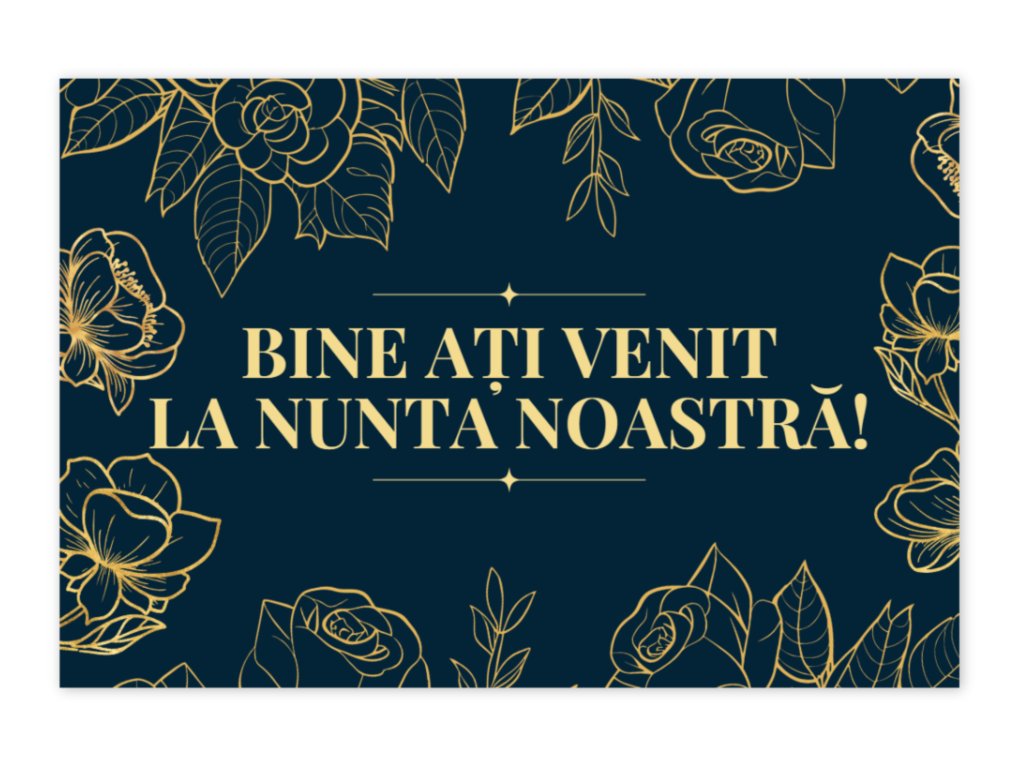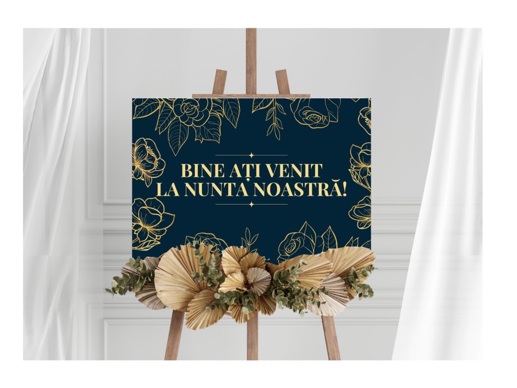 Întâmpinați-vă invitații în atmosfera festivă a nunții cu plăcuța noastră elegantă de întâmpinare! Acestă plăcuță reprezintă mai mult decât o simplă informație - este primul contact cu estetica și stilul D-voastră personal pe care oaspeții îl vor experimenta când ajung la nunta D-voastră. Cu un design excepțional, puteți crea o plăcuță care să reflecte exact viziunile și emoțiile pe care le împărtășiți. Lăsați-i pe oaspeți să se simtă bineveniți și speciali încă de la început, cu plăcuța nostră unică și elegantă de întâmpinare!