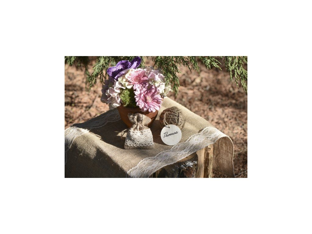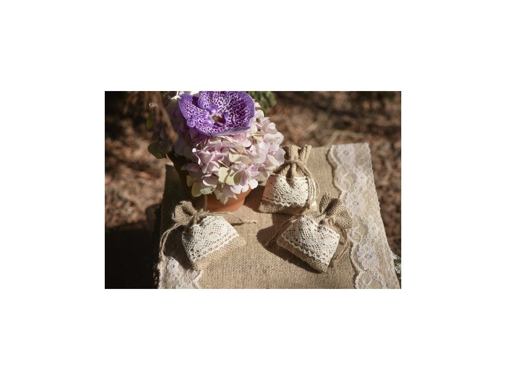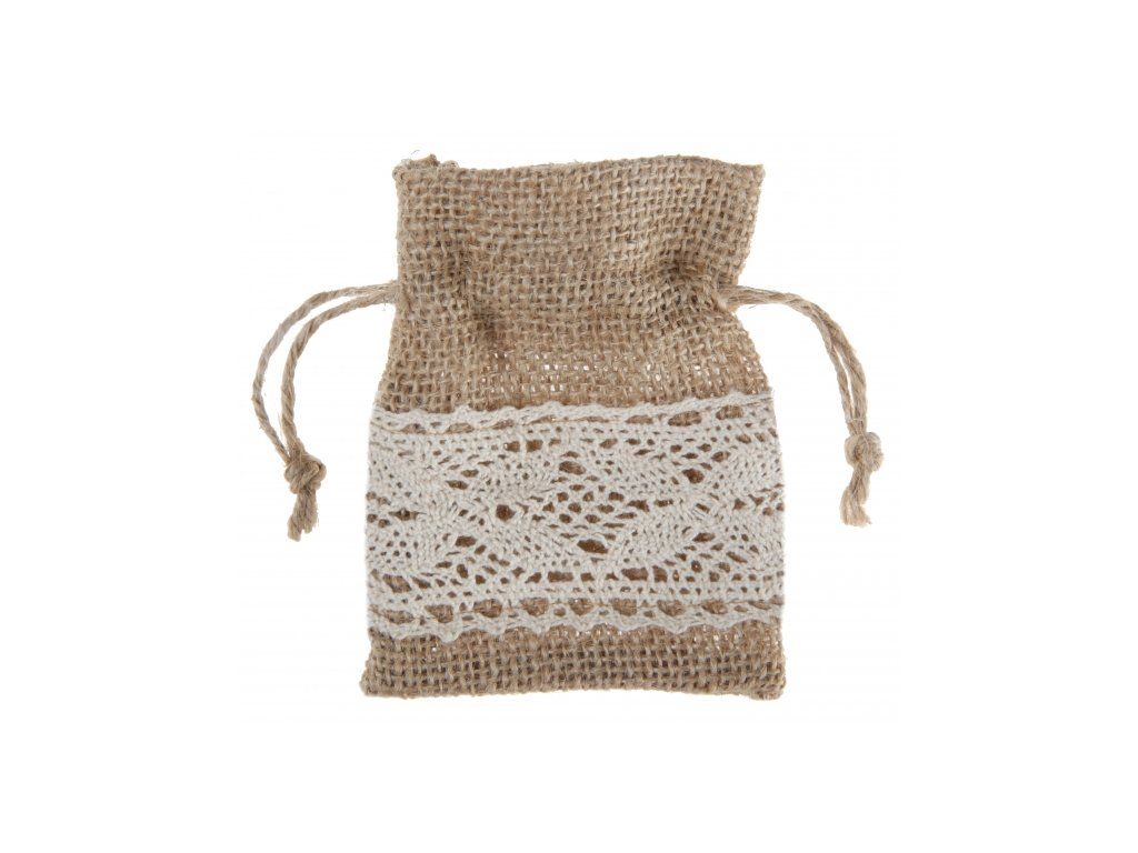 Punga din iută, cu dantelă, poate fi folosită ca decor sau pentru a depozita un cadou.