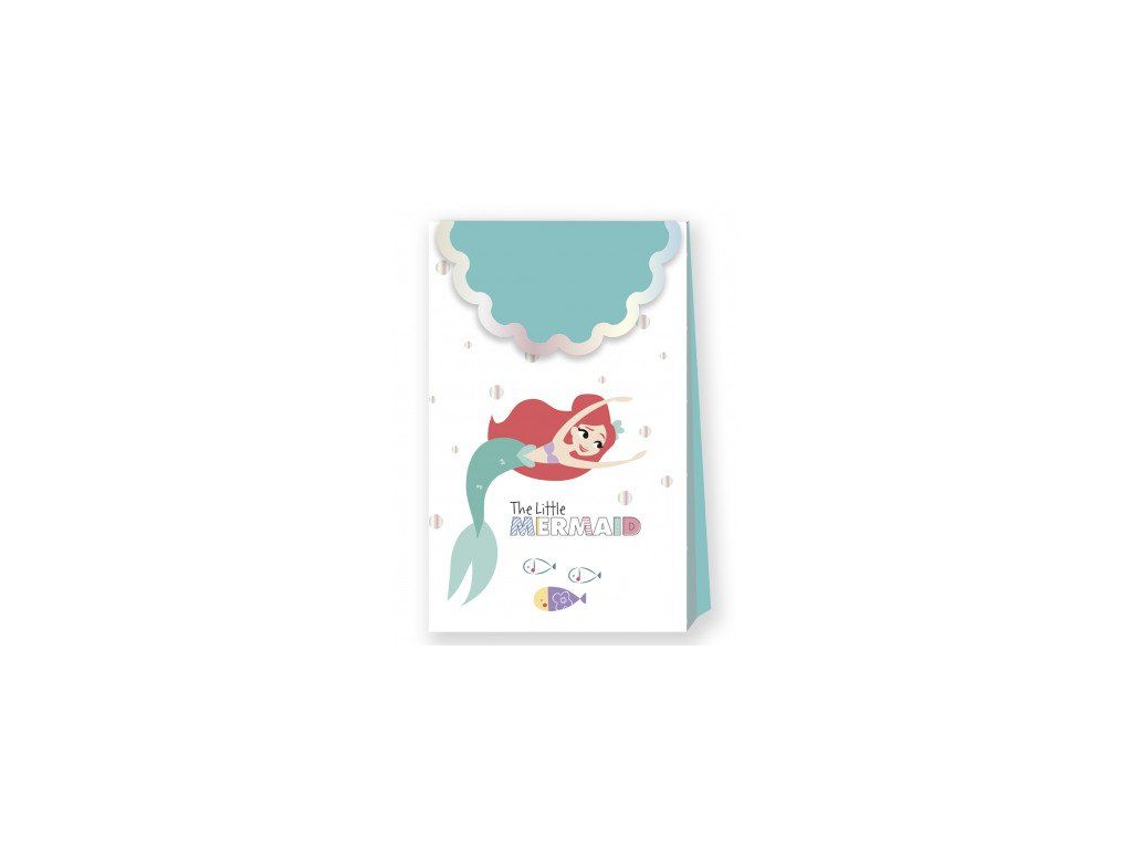 Geantă cadou grozavă cu motivul Ariel mica sirenă. Este potrivit dacă doriți să acordați puțină atenție invitaților dvs. la petrecere. De asemenea, este potrivită pentru cadoul sărbătoritului căreia îi place acest personaj de basm. Geanta cu motivul său este potrivită pentru tema petrecerii Ariel mica sirenă.