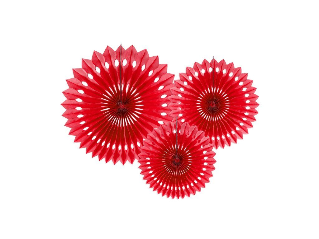 Pachetul conține 3 bucăți de rozete în dimensiuni de aproximativ 20 cm, 25 cm și 30 cm.