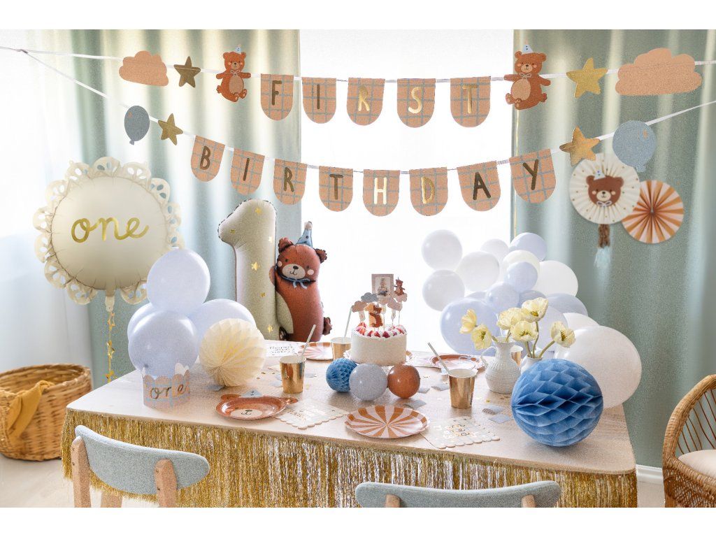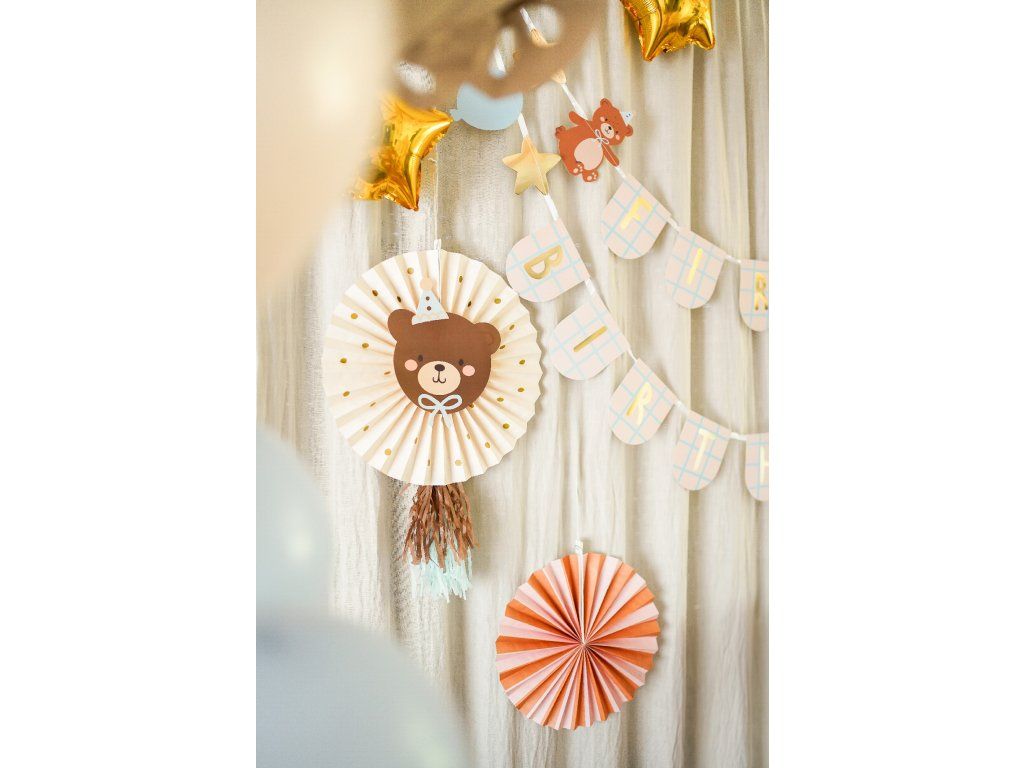 Drăguțele rozete decorative cu motiv de ursuleț sunt decorațiunea ideală pentru o petrecere pentru copii, botez, baby shower sau prima aniversare. Creează o atmosferă delicată și plăcută și completează frumos decorațiunile tematice. Pachetul conține 2 rosete, pe care le puteți asambla ușor și agăța pe perete, deasupra mesei sau în colțul pentru fotografii. Sunt ușoare, compacte și oferă instant spațiului un aspect festiv. Accesoriul perfect pentru toți cei care doresc să creeze o petrecere pentru copii delicată și elegantă.