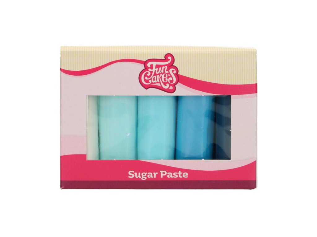Setul de culoare albastră pentru acoperire și modelare conține 5 intensități diferite de culoare albastră. Datorită texturi sale, este un ajutor ideal pentru acoperirea prăjiturilor, deserturilor, dar și în producția de figurine, decorațiuni comestibile, petale, flori, finisaje pentru torturi, brioșe sau cupcakes. Este ideal pentru începători, dar și pentru cofetari experimentați. Produsul nu conține gluten.