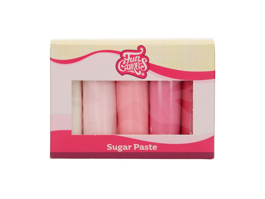 Setul de materiale pentru acoperire și modelare conține 5 intensități diferite de culoare roz. Datorită texturi sale, este un ajutor ideal pentru acoperirea prăjiturilor, deserturilor, dar și în producția de figurine, decorațiuni comestibile, petale, flori, finisaje pentru torturi, brioșe sau cupcakes. Este ideal pentru începători, dar și pentru cofetari experimentați. Produsul nu conține gluten.