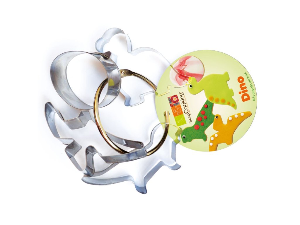 Setul în formă de dinozaur conține 3 tipuri diferite de animale și 1 decupator sub formă de ou. Produsele decupate vor decora perfect torturile pentru ziua băieților. Îl puteți folosi pentru a face produse de patiserie de casă, turtă dulce, prăjituri cu miere și biscuiți. Setul este potrivit și pentru tăierea fondantului sau a marțipanului.