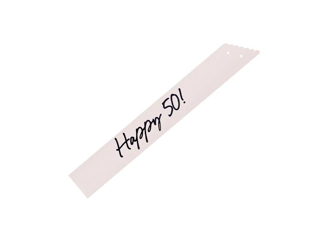 Cinci zeci la orizont? Atunci merită un adevărat spectacol! Cu această șerpă cu inscripția "Happy 50" vei fi steaua de neconfundat a serii – fie că dansezi pe masă sau doar zâmbești subtil lângă tort. Sărbătorește aniversarea rotundă cu umor și stil, pentru că cincizeci e doar un număr (și oricum, încă arăți grozav)! Accesoriul ideal pentru poze trăsnite, îmbrățișat baloane și distrat invitații. Așa că – să trăiască cincizeciul și anii și mai buni ce urmează!