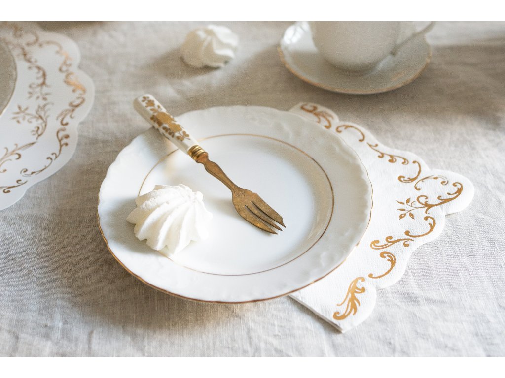 Șervețelele elegante albe din hârtie cu ornament auriu lucios sunt ideale pentru ocazii festive, sărbători sau petreceri. Aceste șervețele vor adăuga mesei dumneavoastră un aspect elegant și luxos.