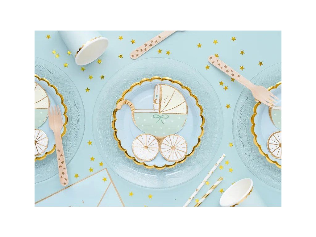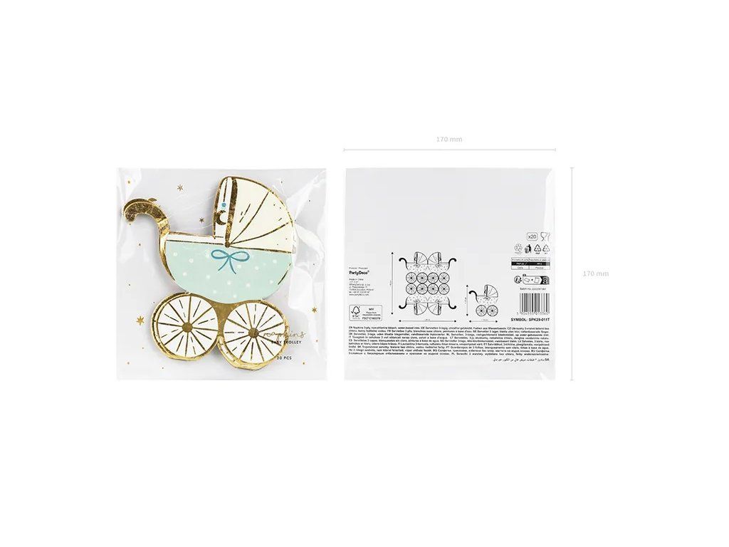 Șervețelele cu model de cărucior albastru sunt un accesoriu delicat și adorabil, perfect pentru petreceri Baby Shower, botezuri sau evenimente dedicate nașterii unui băiețel. Designul lor cu cărucior albastru adaugă o notă elegantă și tematică mesei festive, oferind un plus de rafinament și bucurie fiecărui moment special. Aceste șervețele sunt ideale pentru a transforma orice ocazie într-una memorabilă.