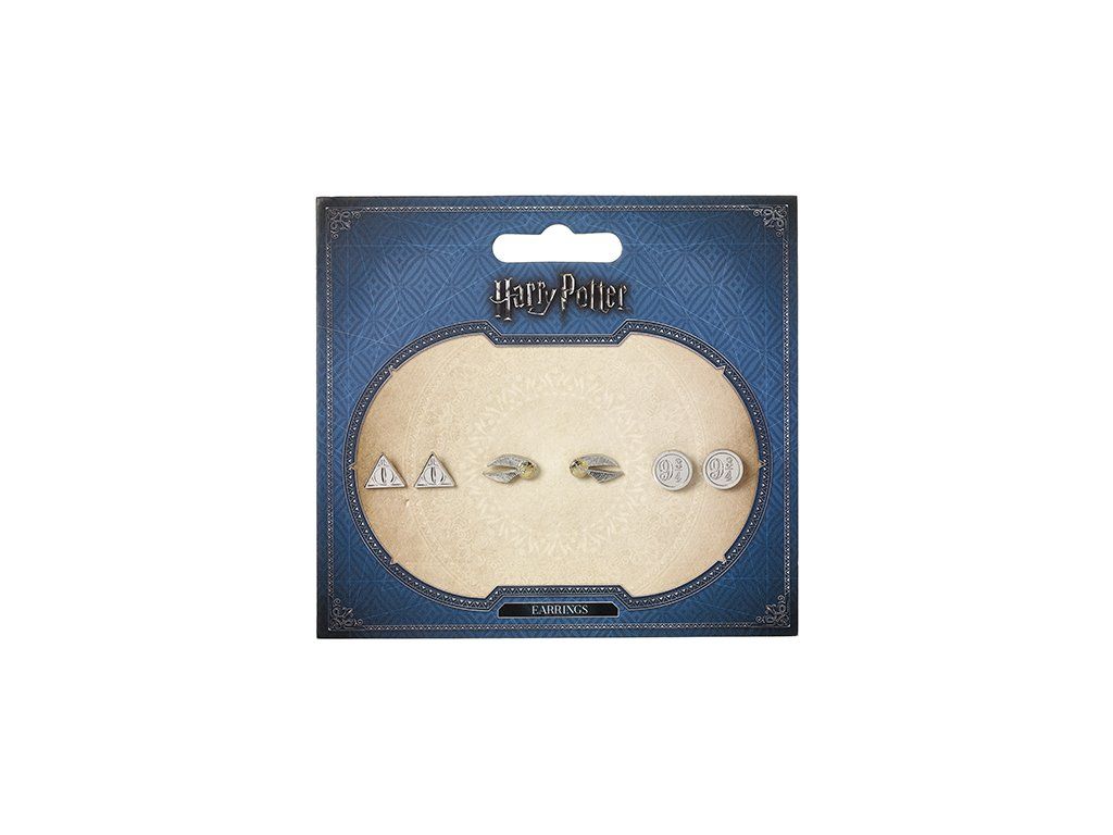 setul conține: 1 pereche de cercei golden shot, 1 pereche de cercei Cadouri ale morții, 1 pereche de cercei Platformă 9 3/4