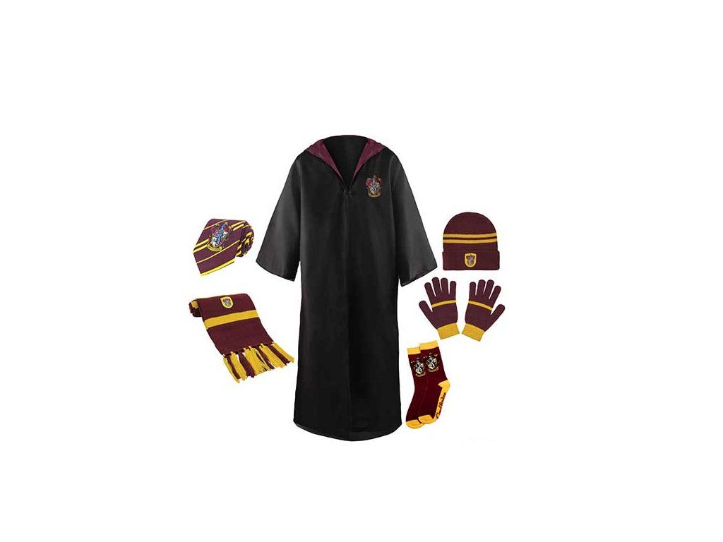 Cu acest set Gryffindor de la Harry Potter, poți deveni un adevărat vrăjitor ! Include o copie a hainei, cravată, eșarfă, pălărie, mănuși și șosete. Setul conține tot ceea ce este necesar pentru a începe să traiți viața vrăjitorilor la Hogwarts la facultatea Gryffindor .