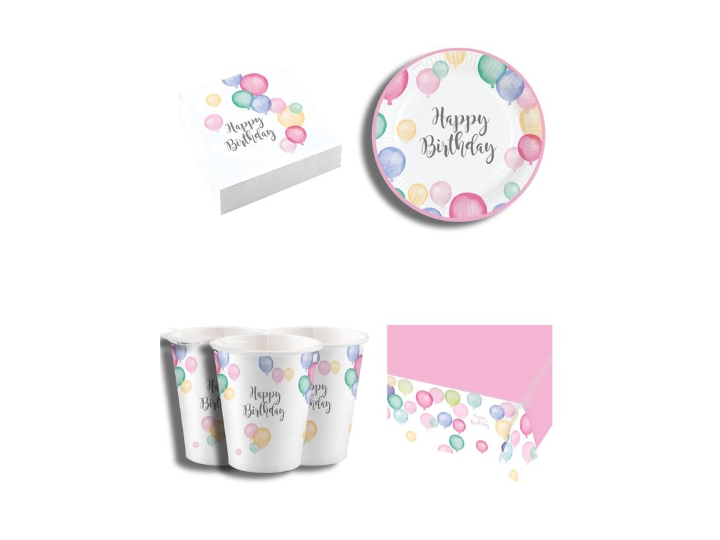 Setul de produse de petrecere cu motiv balon pastel conține tot ce aveți nevoie pentru o petrecere perfectă de ziua de naștere. În setul La mulți ani veți găsi alte accesorii grozave de petrecere care vă vor ajuta să vă decorați petrecerea de ziua de naștere