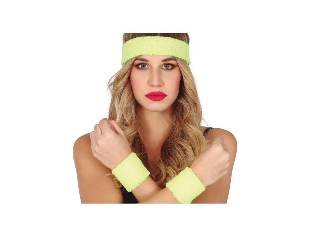 Set benzi de transpirație și bentiță - Galben neon