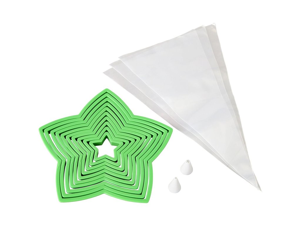 - Conține: 10 decupaje pentru fursecuri, 3 pungi de decorare, 2 vârfuri de decorare (rotunde și steluțe), rețete pentru fursecuri și glazură (în limba engleză) și instrucțiuni de coacere și decorare (în limba engleză)