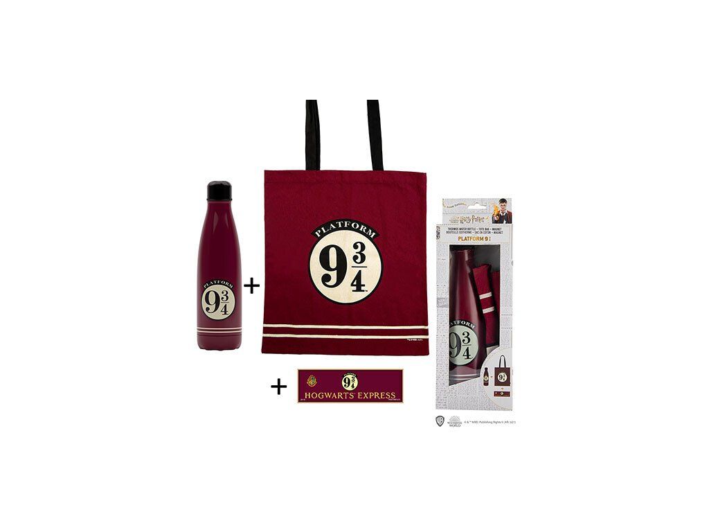 Setul de 3 cadouri practice va fi o alegere evidentă pentru iubitorii lumii vrăjitorilor . Setul include o geantă de pânză, o sticlă de băutură din metal și un magnet cu designul Peronului 9 și 3/4.