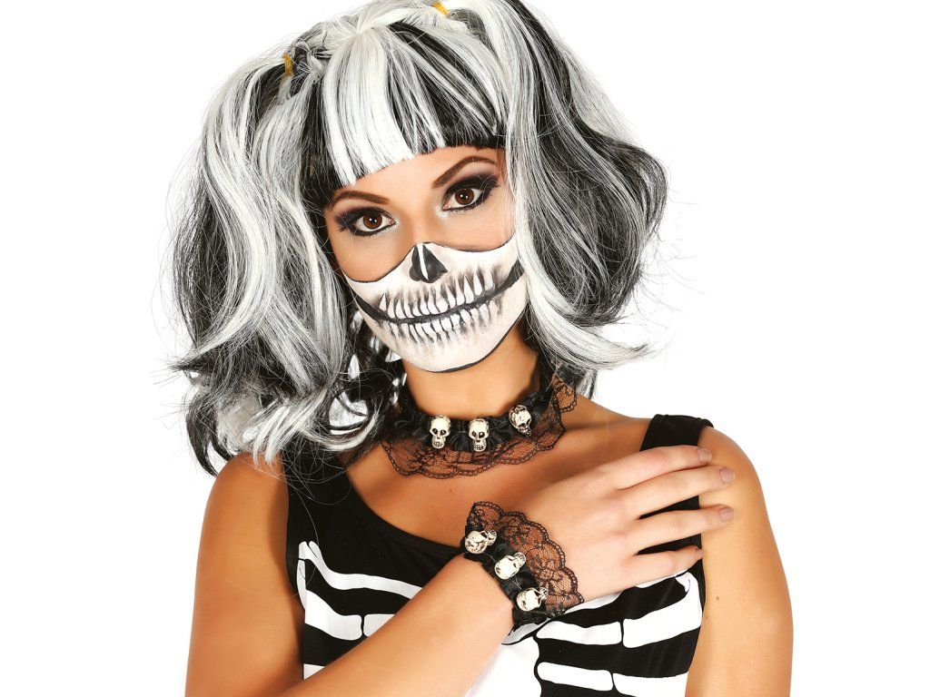 Costumul d-voastră de Halloween sau cranaval, poate fi mai credibil si datorită diferitelor accesorii, cum este de exemplu si acest set de colier si brătară cu cranii. Impresionati cu costumul d-voastră la petrecere sau carnaval.
