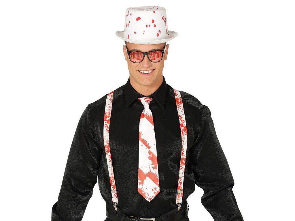 Costumul de Halloween sau carnaval, poate fi mai credibil si datorită diferitelor accesorii cum este acest Set cravată sângeroasă si bretele din filmul horror Blestemul femeii care plânge (The Curse of La LLorona). Acest accesoriu se potriveste pentru diferite costume pentru carnaval, bineînteles lăsăm totul la decizia imaginatiei voastre.