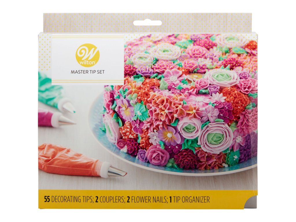 Acest set luxos de duze conține 55 de duze pentru decorat și o cutie, fiind ideal pentru orice decorator de torturi. Setul include următoarele duze Wilton: